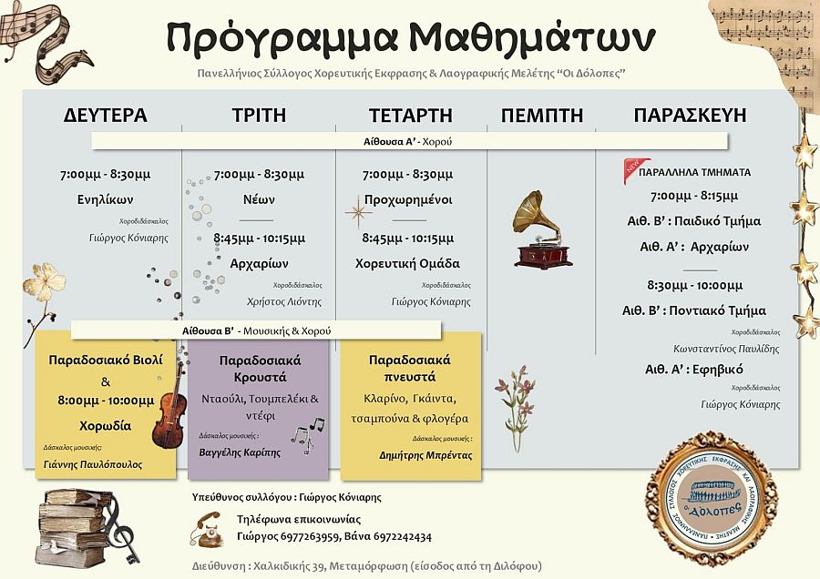 Ο Πανελλήνιος Σύλλογος Χορευτικής Έκφρασης & Λαογραφικής Μελέτης «ΟΙ ΔΟΛΟΠΕΣ» έχει ετοιμάσει ένα πολύ δυνατό πρόγραμμα για την περίοδο 2024-25.