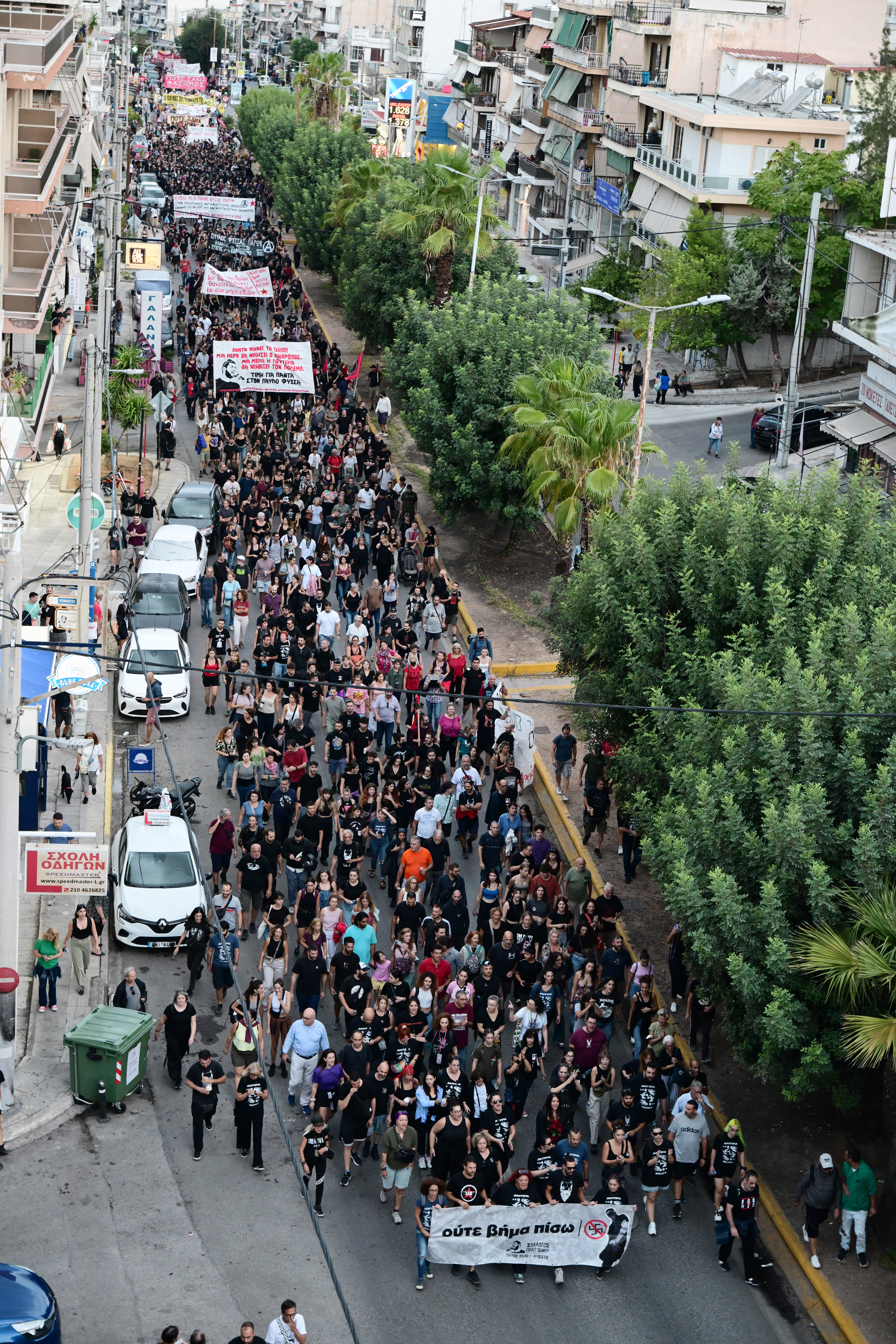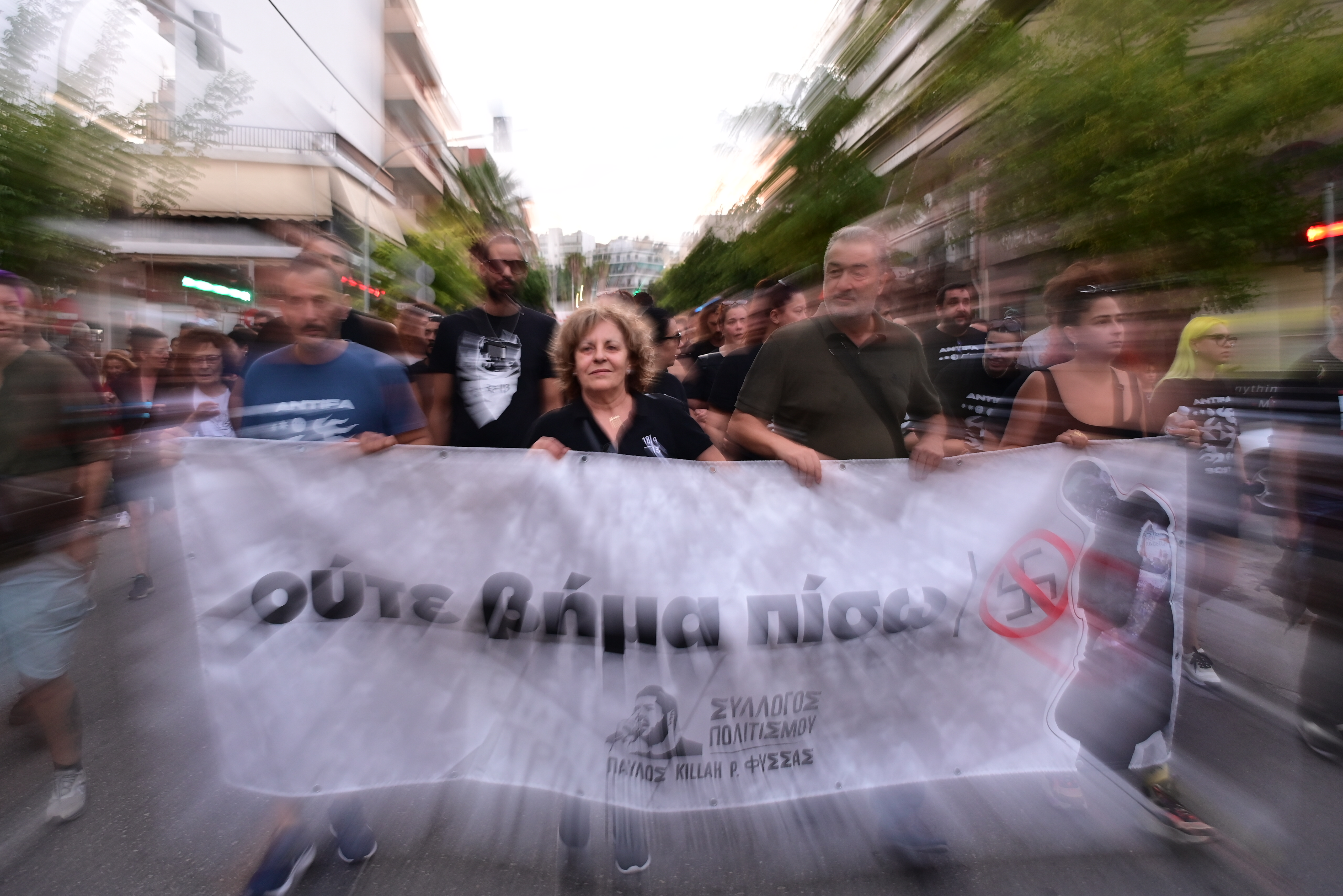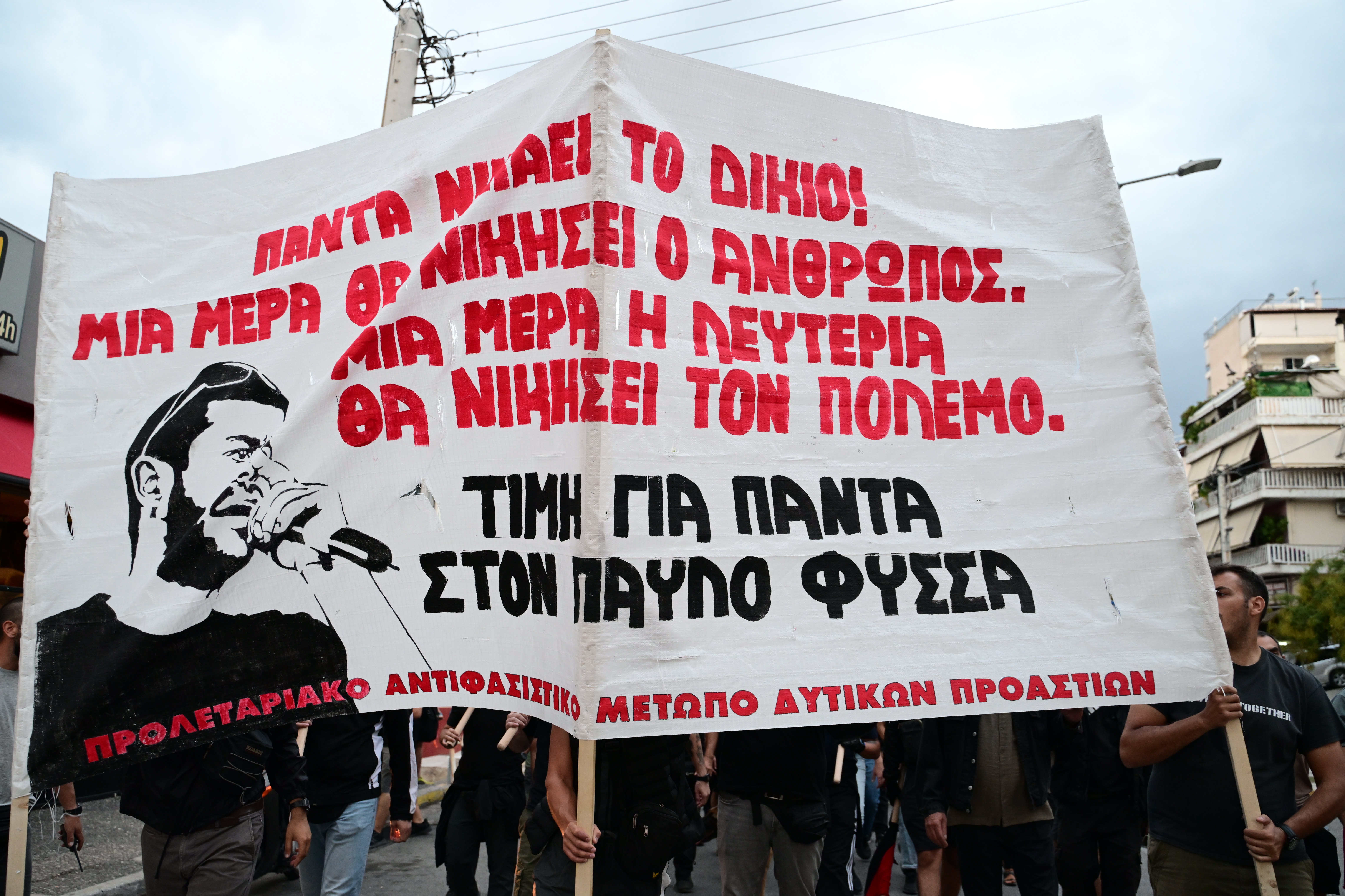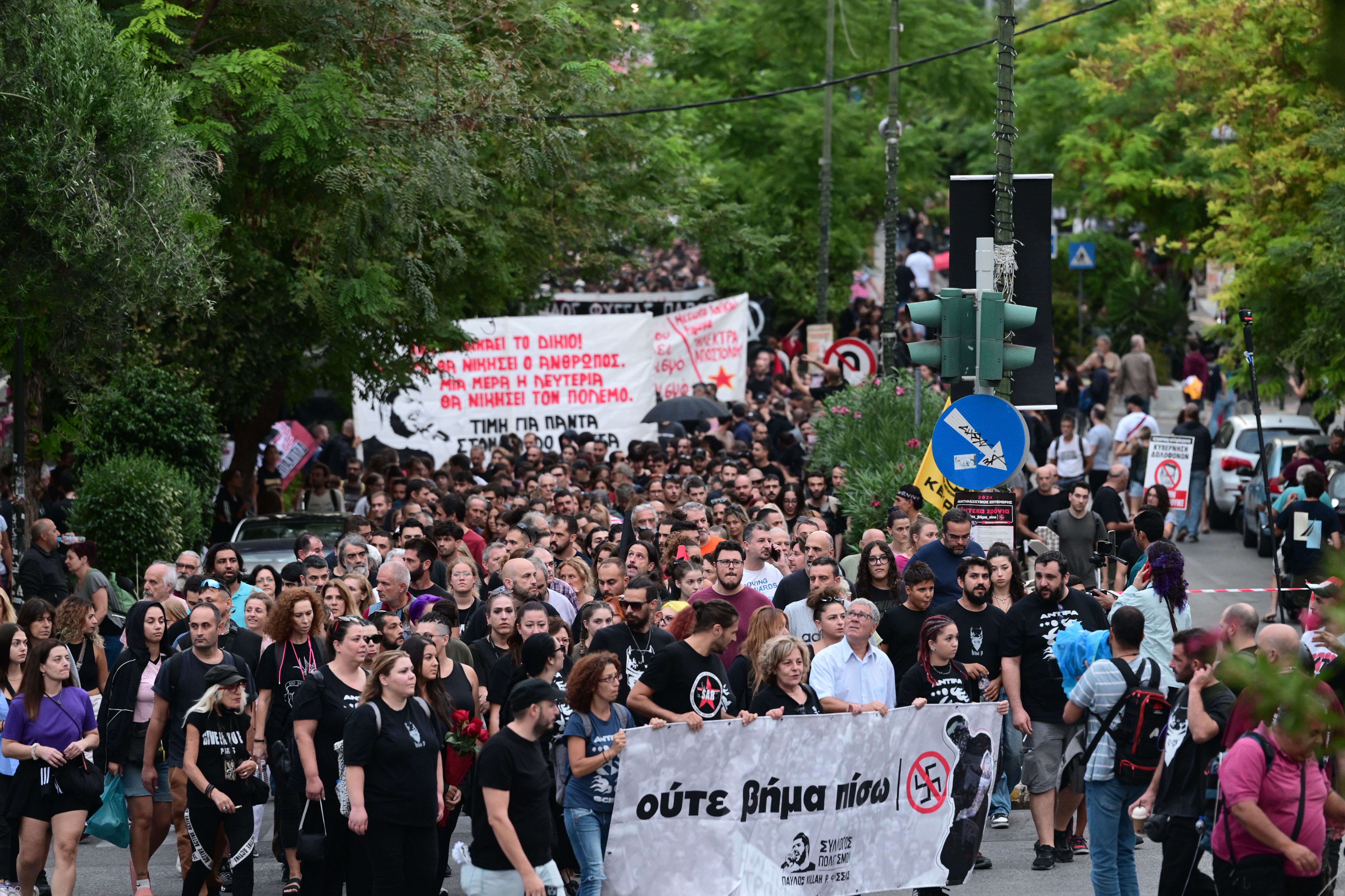 Εκατοντάδες διαδηλωτές, ανάμεσα τους η μητέρα του άτυχου καλλιτέχνη, Μάγδα Φύσσα, συγγενείς, φίλοι αλλά και άνθρωποι που δεν γνώριζαν τον 34χρονο Παύλο, συμμετείχαν στην πορεία που ξεκίνησε από το σημείο όπου έπεσε νεκρός στο Κερατσίνι.