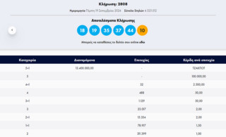 Σημειώνεται, ότι δεν βρέθηκε τυχερό δελτίο που να κερδίζει το ποσό των 13,4 εκατομμυρίων ευρώ.