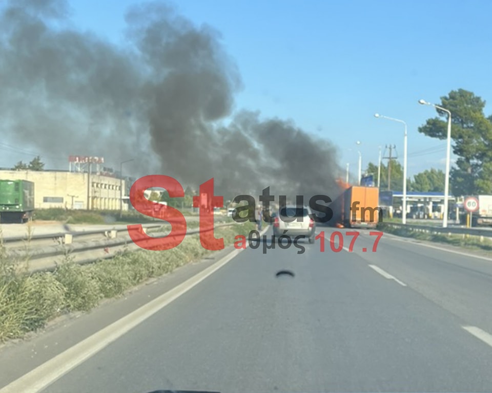 Φωτιά ξέσπασε το απόγευμα της Δευτέρας στην Εθνική Οδό Έδεσσας-Θεσσαλονίκης, στον δρόμο από Χαλκηδόνα προς Θεσσαλονίκη, όταν μια νταλίκα τυλίχθηκε στις φλόγες.