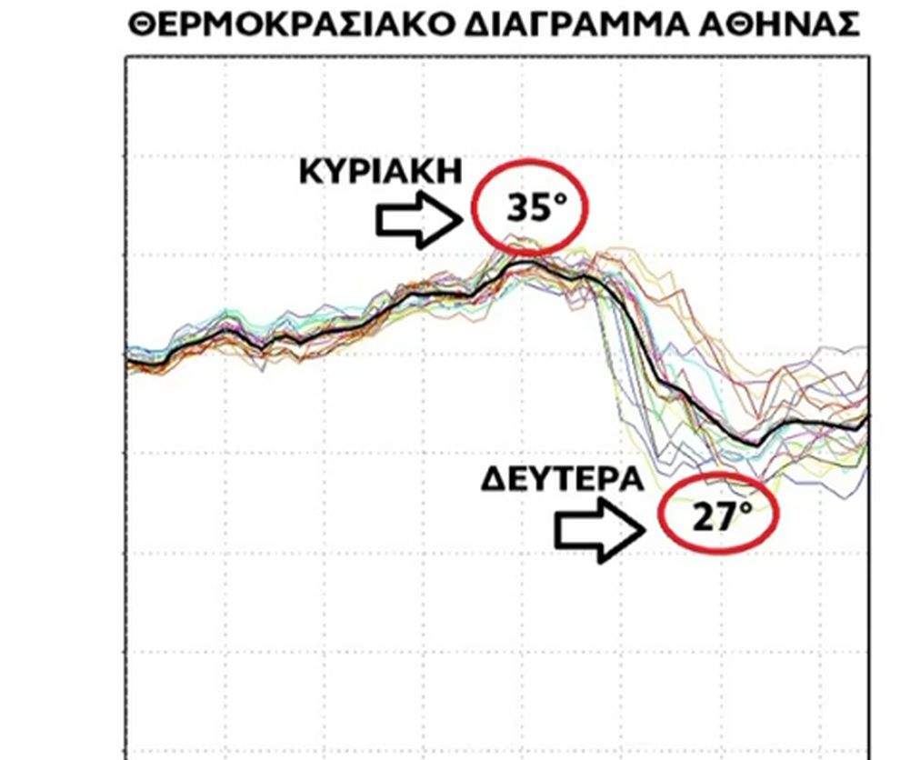Στην Αθήνα, την Κυριακή θα προσεγγίσουμε τους 35 βαθμούς και τη Δευτέρα και την Τρίτη θα φτάσουμε τους 26 και 27 βαθμούς Κελσίου, ανέφερε στην πρόγνωσή του ο κ. Μαρουσάκης.