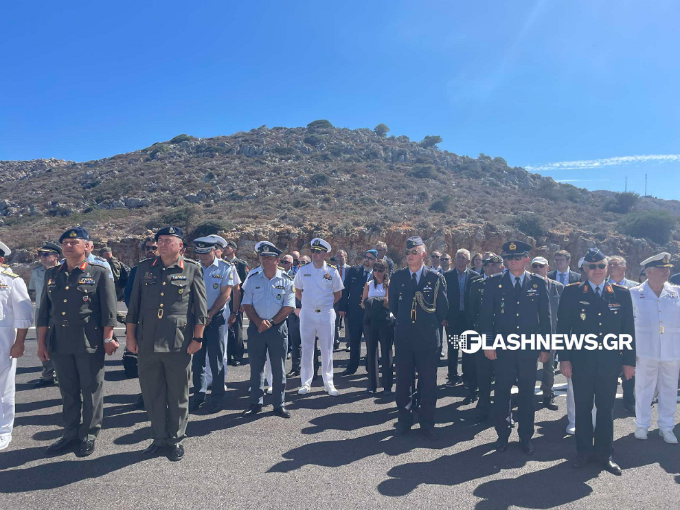 Στη συνέχεια ακολούθησε μια άκρως εντυπωσιακή επίδειξη σκάφους F16 της ομάδας Ζεύς, που πέταξε πάνω από το Πεδίο Βολής Κρήτης.