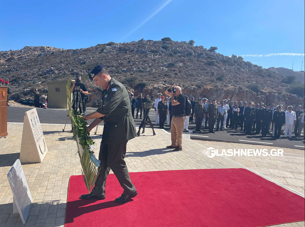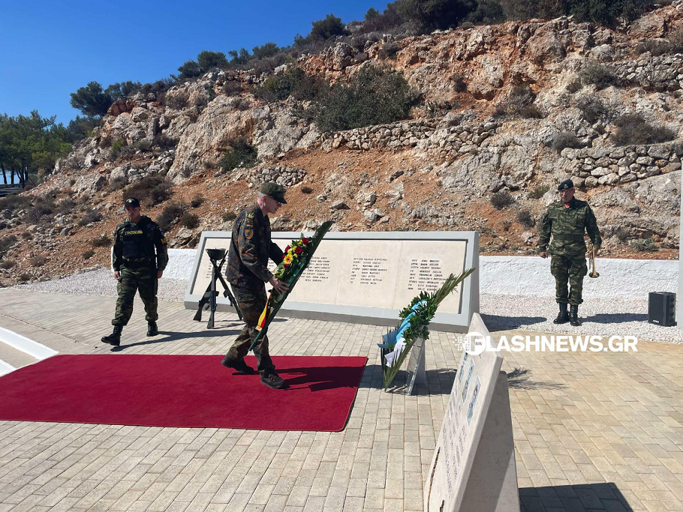 Ακολούθησε κατάθεση στεφάνων στο μνημείο των πεσόντων που βρίσκεται εντός του Χώρου Εκτόξευσης του Πεδίου Βολής και τηρήθηκε ενός λεπτού σιγή.