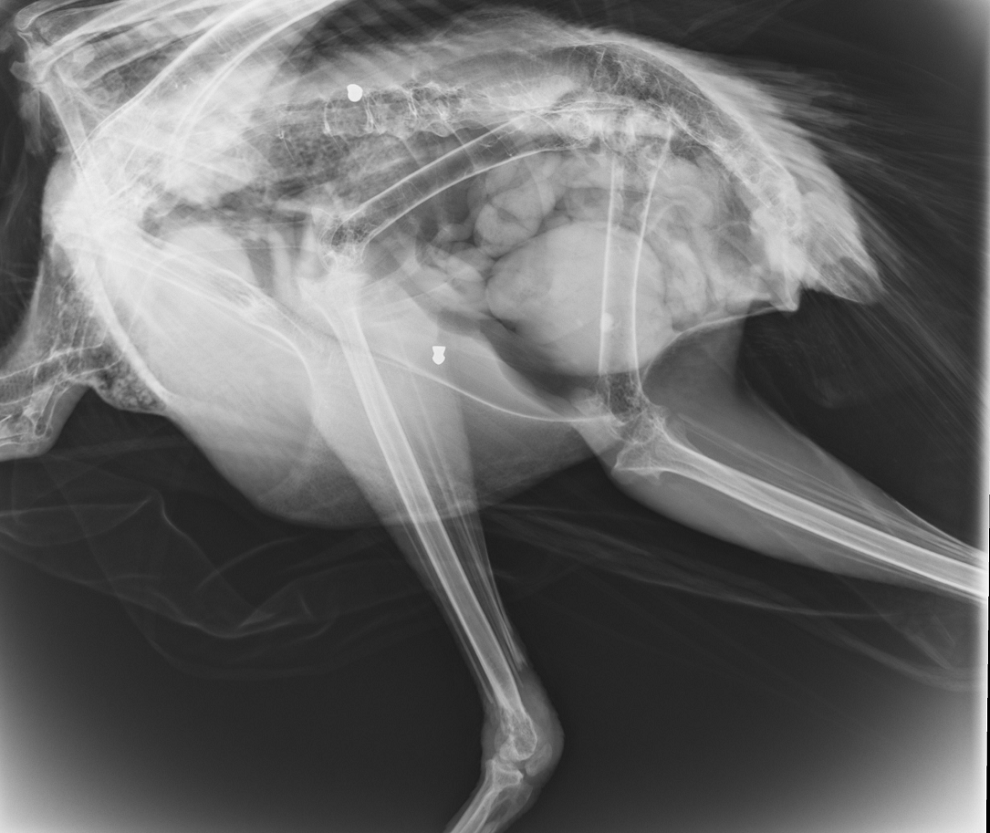 Με έκπληξή μας, εμφανίζοντας την ακτινογραφία, είδαμε δυο βολίδες αεροβόλου κι ένα σκάγι μέσα στο σώμα του!