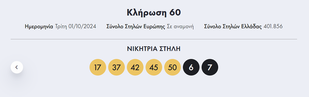 Οι τυχεροί αριθμοί είναι οι εξής: 17, 37, 42, 45, 50 και 6,7.