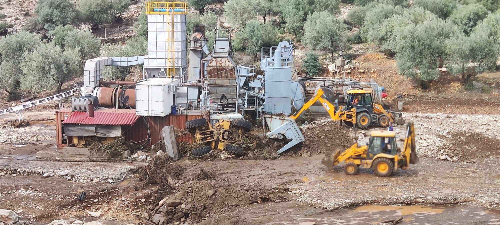 Το νερό από την έντονη βροχόπτωση παρέσυρε τα πάντα στο πέρασμά του. Ένα μηχάνημα της επιχείρησης αναποδογύρισε, όπως βλέπετε στις εικόνες του sinidisi.gr, ενώ φέρεται να έχει παρασυρθεί από χείμαρρο και το αυτοκίνητο του φύλακα.