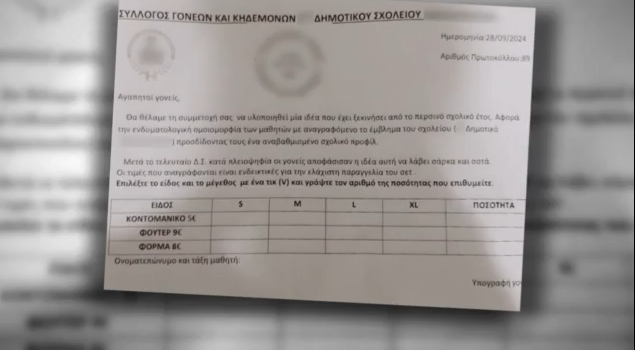Σύμφωνα με το Live News, οι γονείς των μαθητών που φοιτούν στο συγκεκριμένο δημοτικο σχολείο έλαβαν την προηγούμενη εβδομάδα ένα χαρτί, το οποίο έπρεπε να συμπληρώσουν και να υπογράψουν εάν συμφωνούν με την υιοθέτηση της σχολικής στολής.