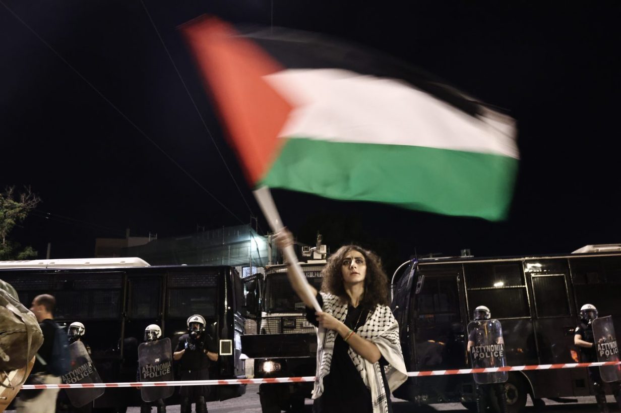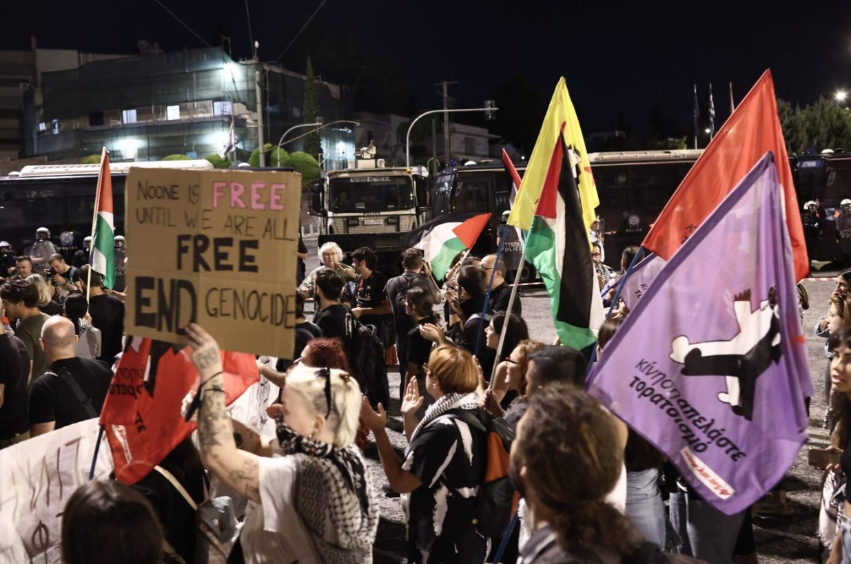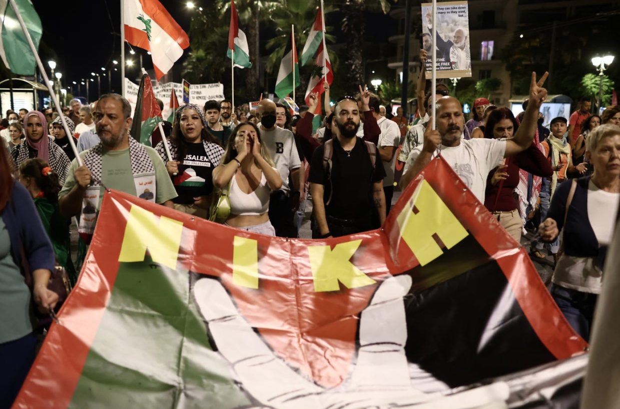 Πορεία αλληλεγγύης στην Παλαιστίνη πραγματοποιούν αριστερές οργανώσεις, φορείς και συλλογικότητες με τελικό προορισμό την πρεσβεία του Ισραήλ.