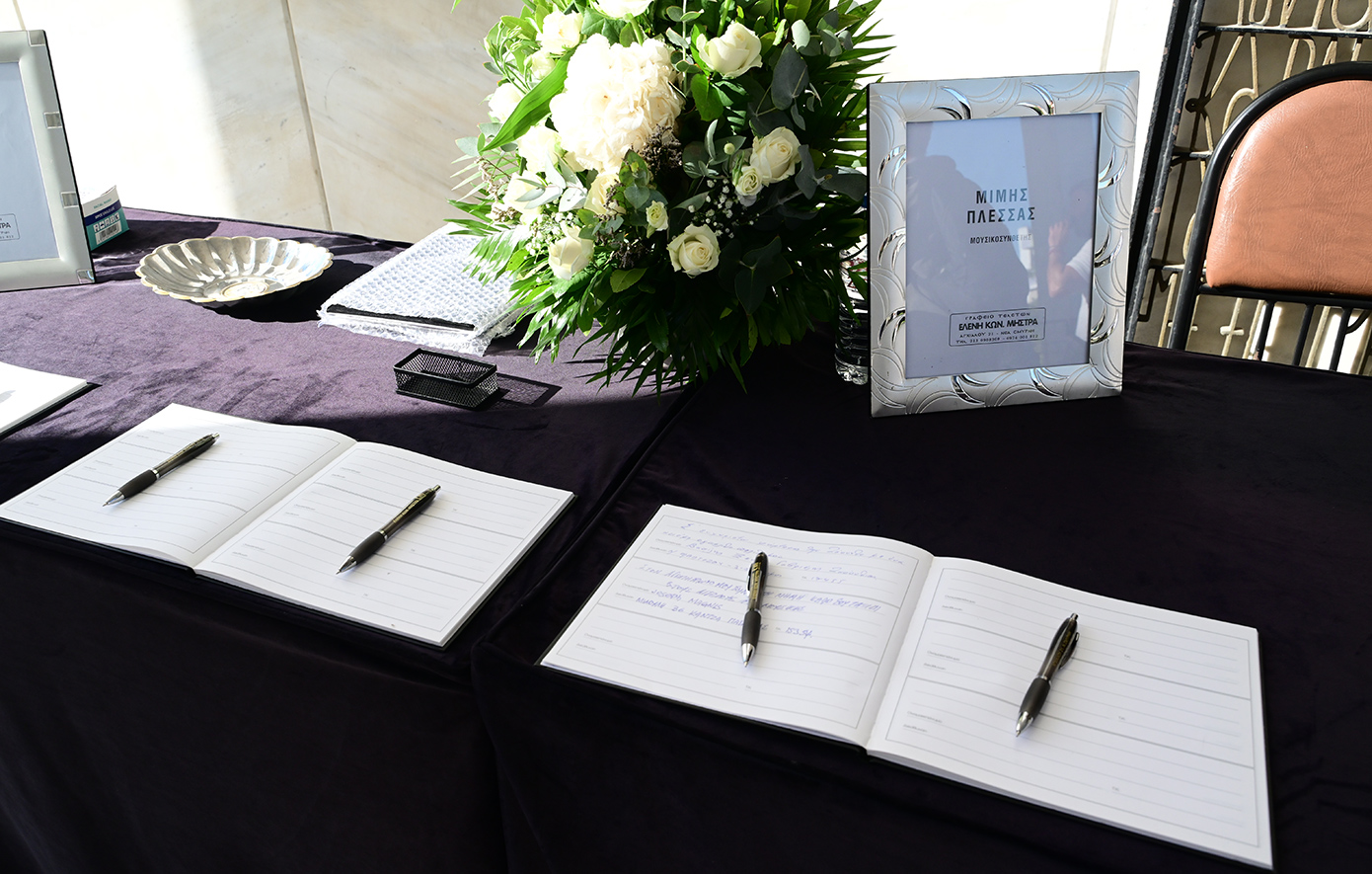 «Θα αποχαιρετήσουμε τον Λατρεμένο μας Μίμη Πλέσσα την Τετάρτη 9 Οκτωβρίου στις 15.00 στο Α’ Κοιμητήριο Αθηνών. (Όποιος επιθυμεί να αποτίσει φόρο τιμής, ο Μίμης μας θα βρίσκεται εκεί από τις 10 π.μ.)» έγραψε στο Facebook η σύζυγός του, Λουκίλα Καρρέρ.