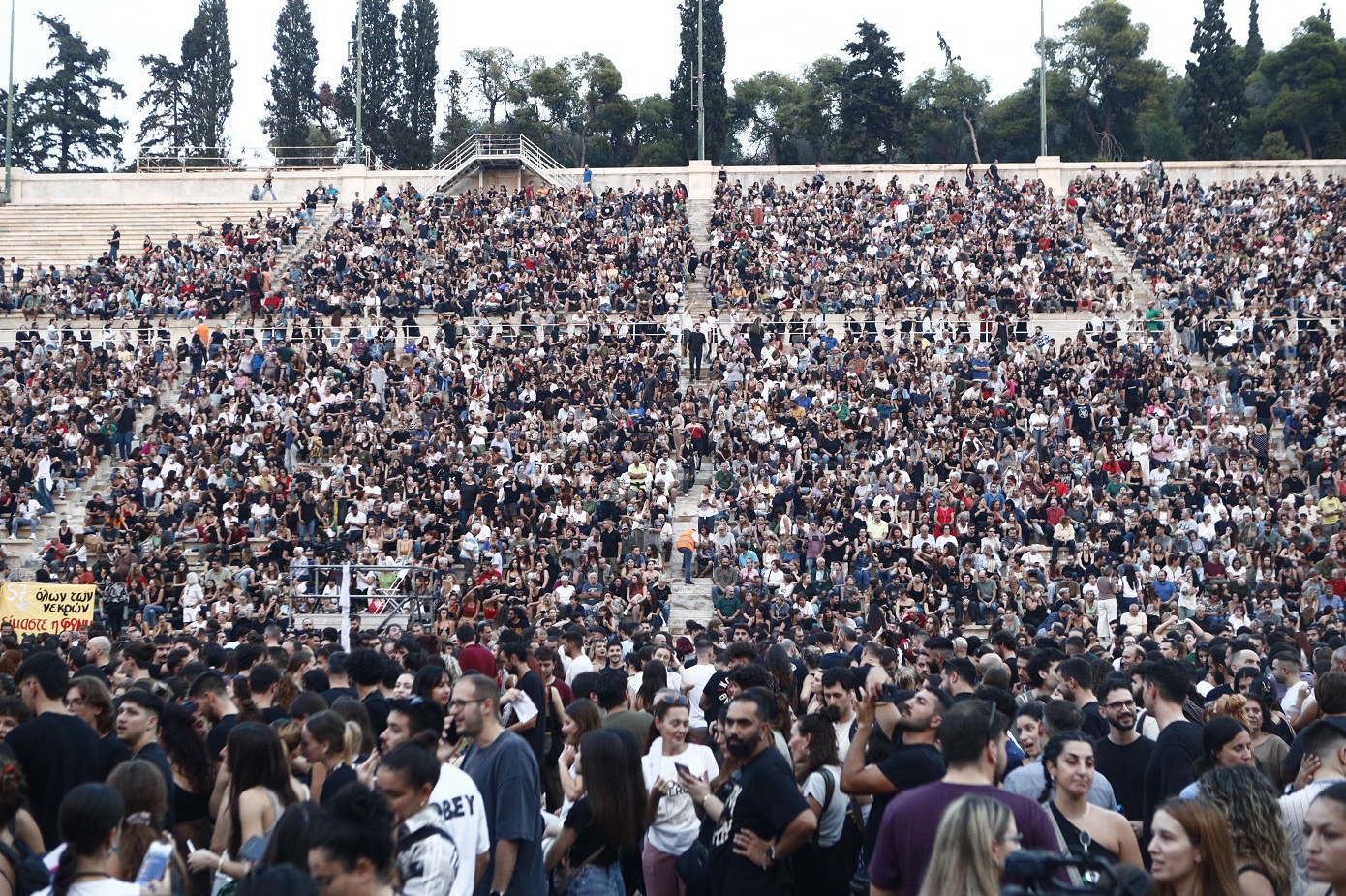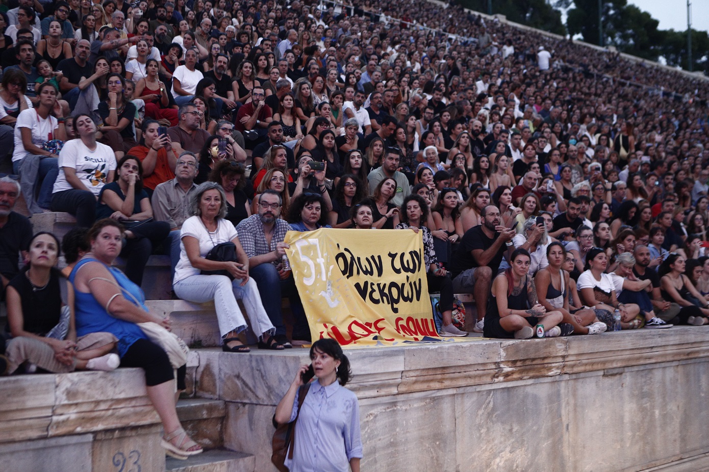 Πλήθος κόσμου έδωσε «το παρών» στο Καλλιμάρμαρο για τη συναυλία στη μνήμη των 57 θυμάτων του δυστυχήματος των Τεμπών.