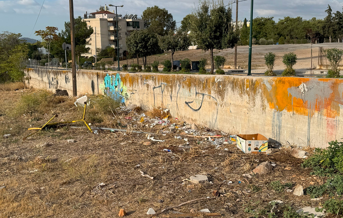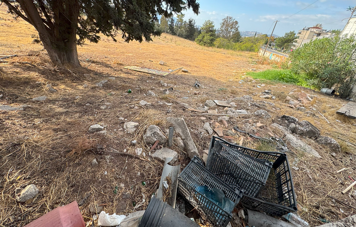 Το Newsbeast επισκέφθηκε το σημείο και κατέγραψε με τον φωτογραφικό του φακό την αποκαρδιωτική εικόνα που επικρατεί: ξερά χόρτα, κομμένα κλαδιά, πλαστικά μπουκάλια, σπασμένα γυαλιά, αλουμινένια κουτάκια, σκουριασμένες ταμπέλες, πεταμένα τελάρα και κάθε είδους απορρίμματα βρίσκονται διάσπαρτα στο οικόπεδο. Η κατάσταση αυτή όχι μόνο προσβάλλει την αισθητική της περιοχής, αλλά δημιουργεί και σοβαρούς κινδύνους μόλυνσης.