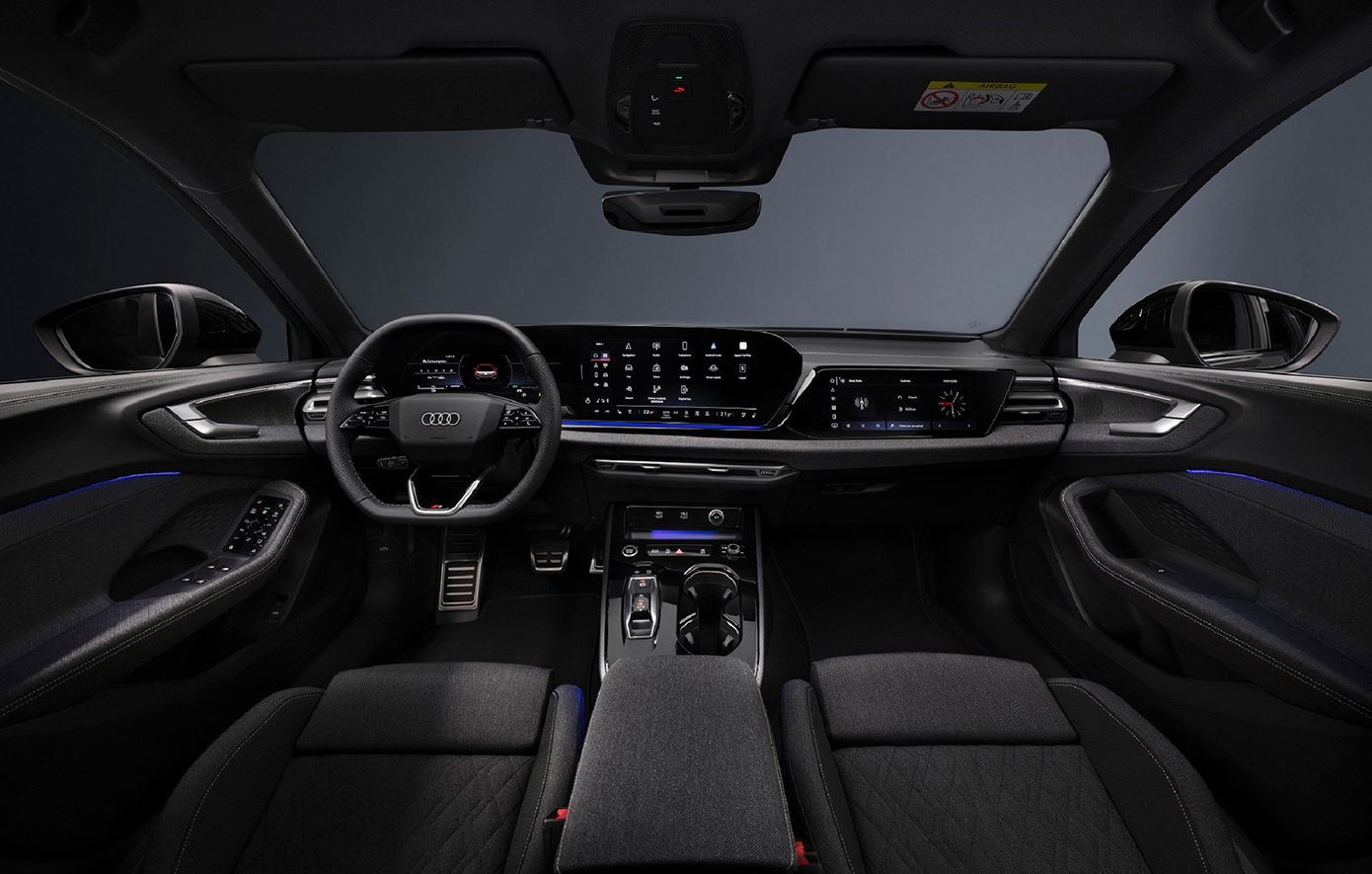 Η λεπτή πανοραμική οθόνη MMI με κυρτή σχεδίαση είναι τεχνολογίας OLED. Αποτελείται από το virtual cockpit με οθόνη 11,9 ιντσών και την οθόνη αφής MMI 14,5 ιντσών. Προαιρετικά διαθέσιμη είναι και οθόνη συνοδηγού MMI 10,9 ιντσών. Το νέο A5 διαθέτει Head-up display, μέσω του οποίου ο οδηγός έχει τη δυνατότητα να ελέγχει το όχημα και τις λειτουργίες του infotainment.