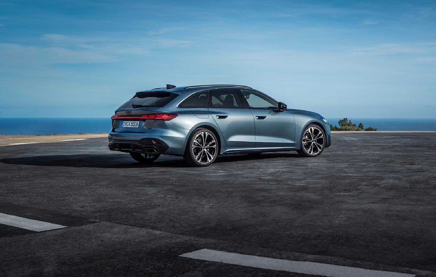 Στο Avant, η σχεδιαστική γραμμή οροφής συγχωνεύεται με μια ενσωματωμένη αεροτομή οροφής που εκτείνεται στο επίπεδο πίσω παρμπρίζ, ενώ οι κεκλιμένες κολόνες D τονίζουν το σπορ προφίλ του A5 Avant.