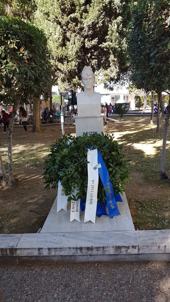 Η μαρμάρινη προτομή του στο μέσον μιας μικρής πλατείας που φέρει το όνομά του, στο κέντρο της Καβάλας, θυμίζει σε όλους τον ηρωισμό του. Μια μαρμάρινη προτομή που αναπαριστά ένα νέο άνθρωπο, μάλλον χαμογελαστό, το όνομα του οποίου έγινε συνώνυμο ηρωισμού, ευθύνης και πίστης προς την πατρίδα.