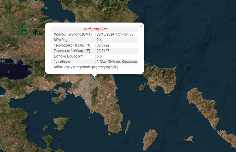 Σεισμική δόνηση 2,4 Ρίχτερ σημειώθηκε στις 20:14 το απόγευμα της Παρασκευής στα βόρεια προάστια της Αθήνας.
