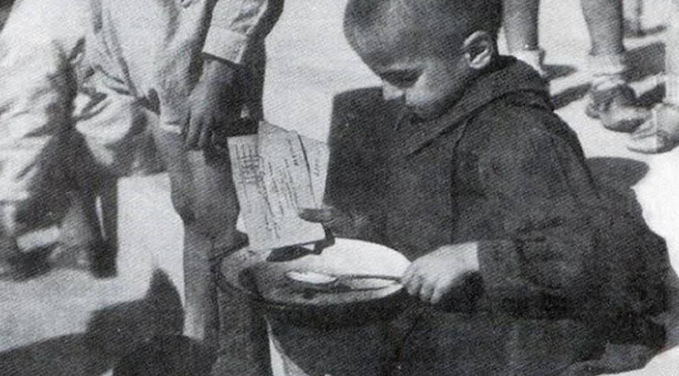 Τα λιγοστά τρόφιμα μοιράζονταν με δελτίο και η πλειονότητα των κατοίκων σιτιζόταν αποκλειστικά από τα συσσίτια που και πάλι δεν χορηγούνταν πάντα σε όλους. η μερίδα, μισό κύπελλο από αγνώστου υφής νερόβραστο χυλό, περιείχε μόλις 150 – 200 θερμίδες, ενώ το όριο επιβίωσης προσδιορίζεται γύρω στις 1.200.