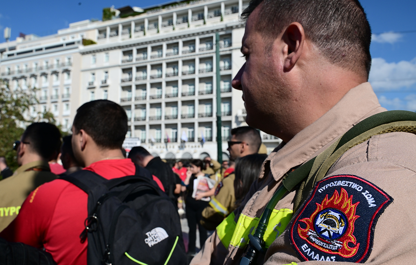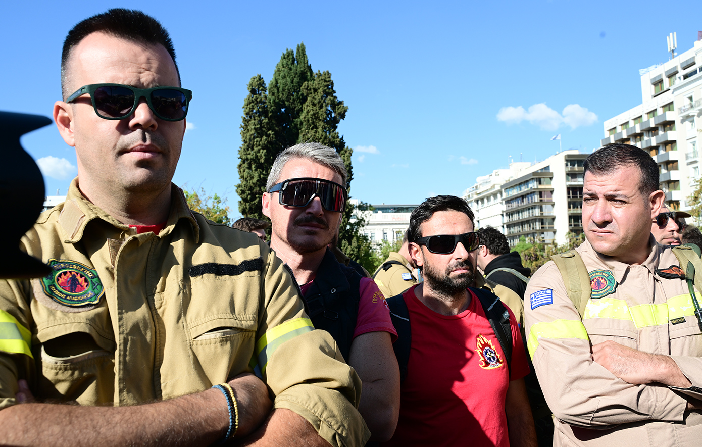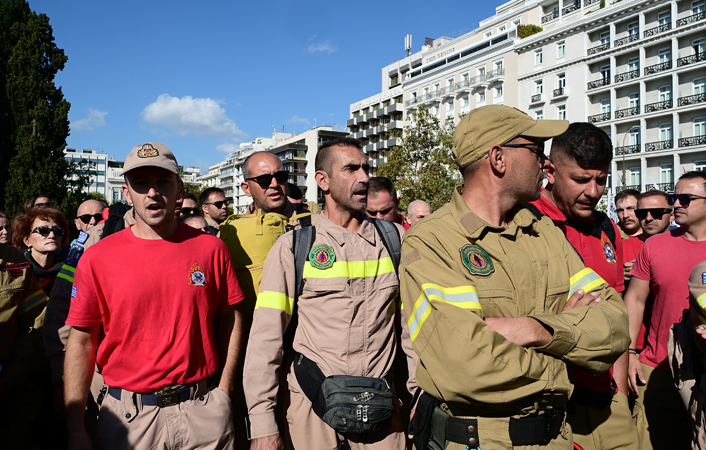 Συγκέντρωση στην πλατεία Συντάγματος, έξω από τη Βουλή πραγματοποιούν αυτή την ώρα εποχικοί πυροσβέστες, καταγγέλλοντας την επίθεση που δέχθηκαν από τα ΜΑΤ την ώρα που διεκδικούσαν τη μονιμοποίηση τους.