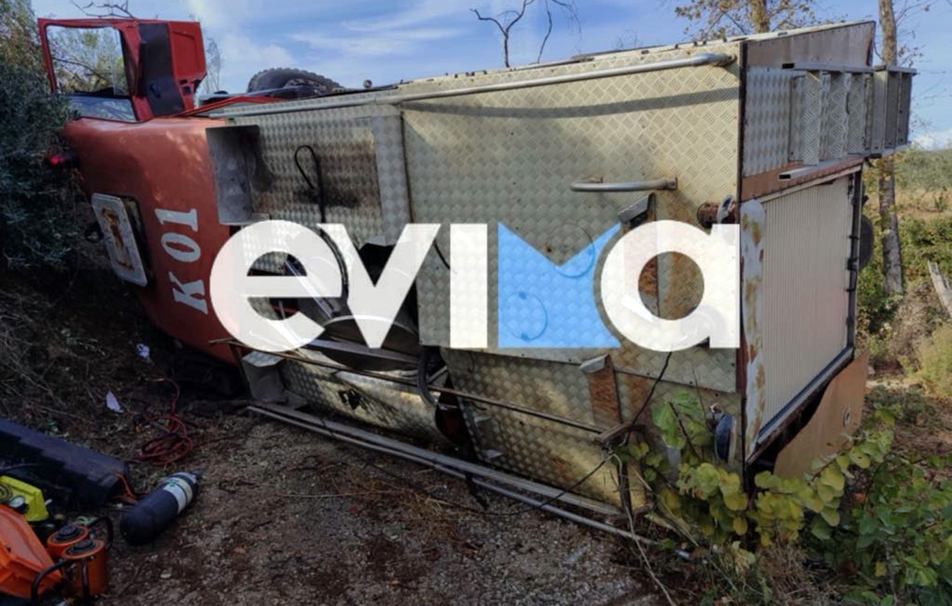 Χωρίς τις αισθήσεις του μεταφέρεται στο Κέντρο Υγείας Μαντουδίου ο οδηγός του πυροσβεστικού οχήματος που έπεσε σε χαράδρα στην Κοτσίκια Ευβοίας.