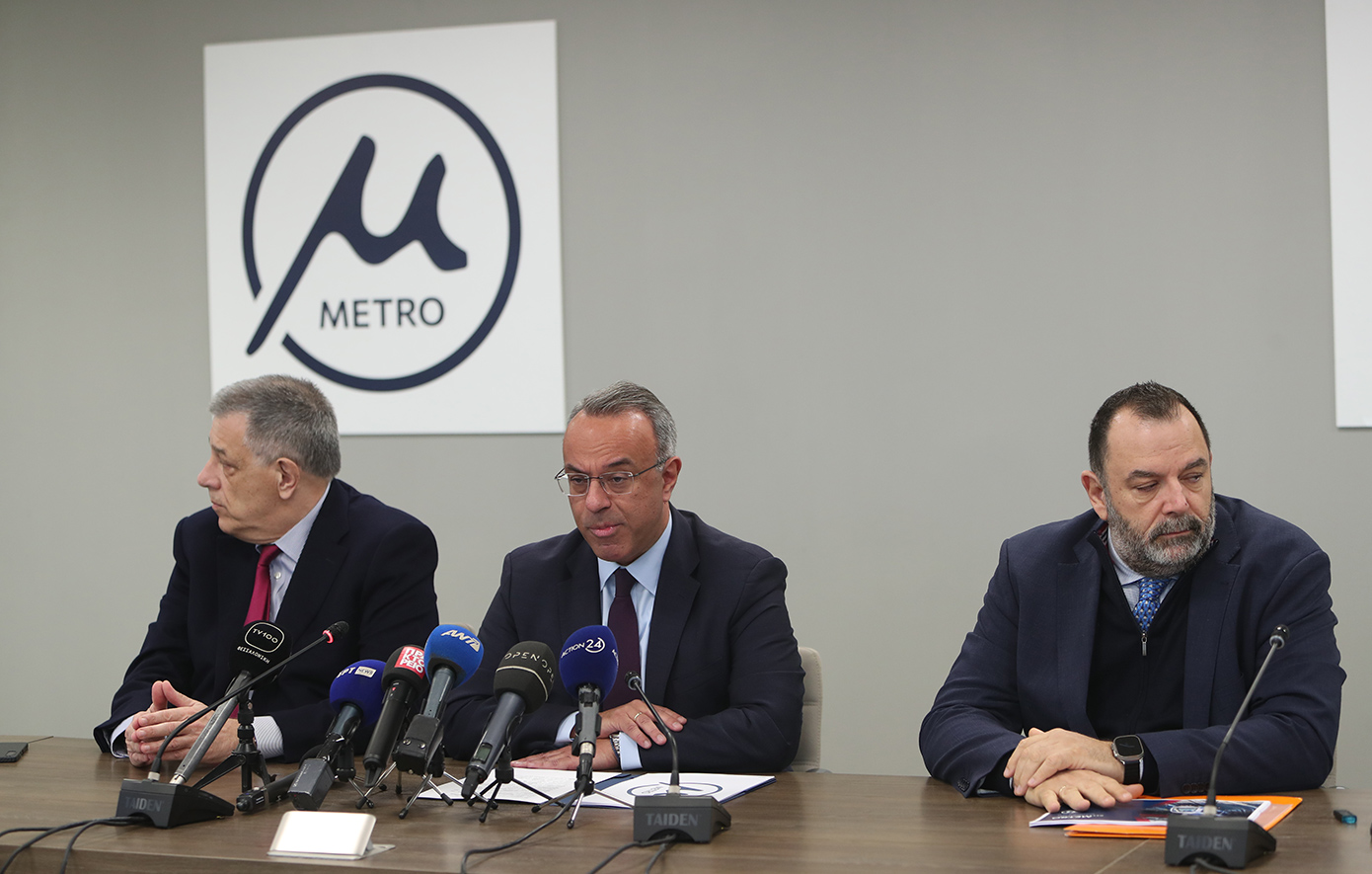 Το λογότυπο του μετρό Θεσσαλονίκης αποκαλύφθηκε σήμερα στη διάρκεια εκδήλωσης που έγινε στα γραφεία της Ελληνικό Μετρό ΑΕ, παρουσία του υπουργού Υποδομών και Μεταφορών, Χρήστου Σταϊκούρα, και του αρμόδιου υφυπουργού, Νίκου Ταχιάου, του διευθύνοντος συμβούλου της Ελληνικό Μετρό, Νίκου Κουρέτα και του διευθύνοντος συμβούλου της THEMA, Κάρλο Μπιάνκο, που έχει αναλάβει τη λειτουργία και τη συντήρηση του έργου.