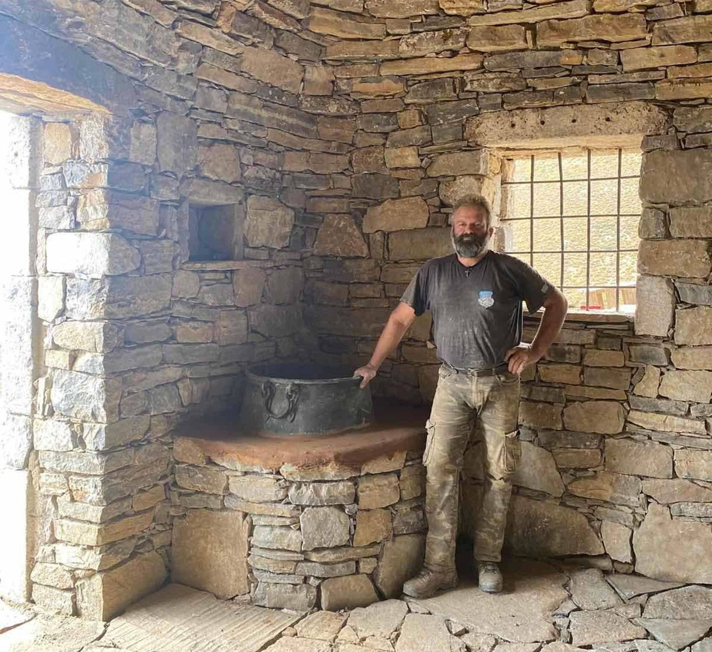 Όπως μεταδίδει το zarpanews.gr, ο Ευτύχης Τζιρτζιλάκης είδε πως η επιφάνεια της μεγάλης πλάκας που είναι η Αγία Τράπεζα ήταν σοβαντισμένη από πάνω και αποφάσισε να την ξύσει.
