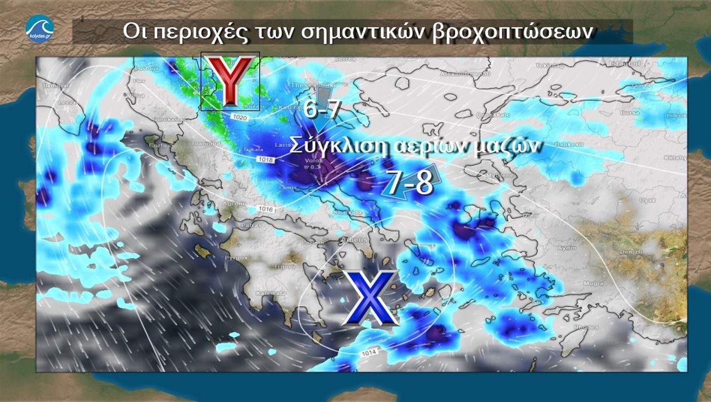 «Οι ασταθείς αέριες μάζες του ανώτερου χαμηλού και η σύγκλιση των αερίων μαζών στις κατώτερες στάθμες και την επιφάνεια λόγω του επιφανειακού χαμηλού θα προκαλέσουν επικίνδυνα καιρικά φαινόμενα, κυρίως, σε Θεσσαλία, βόρειες Σποράδες, Εύβοια και Φθιώτιδα, όπου από σήμερα αργά το βράδυ κι έως αύριο το μεσημέρι είναι πιθανό να προκληθούν πλημμυρικά φαινόμενα και να δημιουργηθούν προβλήματα από τους θυελλώδεις Β.Α. ανέμους (7-8) με ριπές ακόμη και στα 9 μποφόρ» αναφέρει σε ανάρτησή του στο Χ o διευθυντής της ΕΜΥ Θοδωρής Κολυδάς.