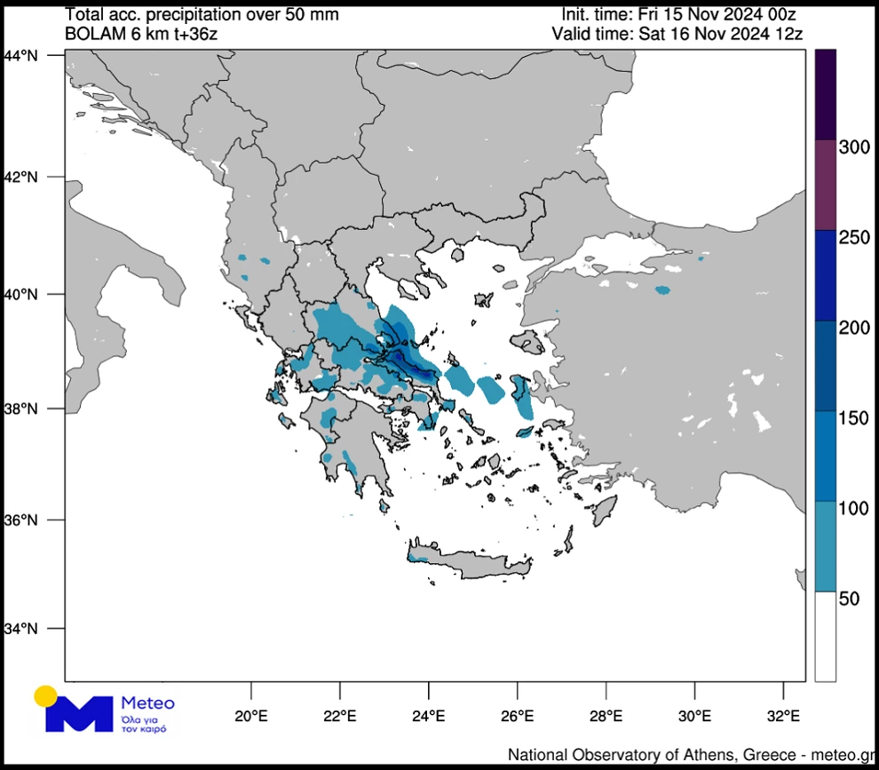 Επιπλέον, το meteo.gr του Εθνικού Αστεροσκοπείου ανέφερε ότι το βράδυ της Παρασκευής (15/11) και κατά τη διάρκεια της νύχτας προς Σάββατο (16/11) αρκετά ισχυρά φαινόμενα θα εκδηλωθούν σε περιοχές της ανατολικής ηπειρωτικής χώρας και του Αιγαίου. Περισσότερο θα επηρεαστούν η κεντρική και βόρεια Εύβοια, οι Σποράδες, η Μαγνησία, και δευτερευόντως τμήματα της Φθιώτιδας, της Βοιωτίας, της νότιας Χαλκιδικής, των βόρειων Κυκλάδων και του ανατολικού Αιγαίου. Παροδικά έντονα φαινόμενα αναμένονται και στην Αττική.