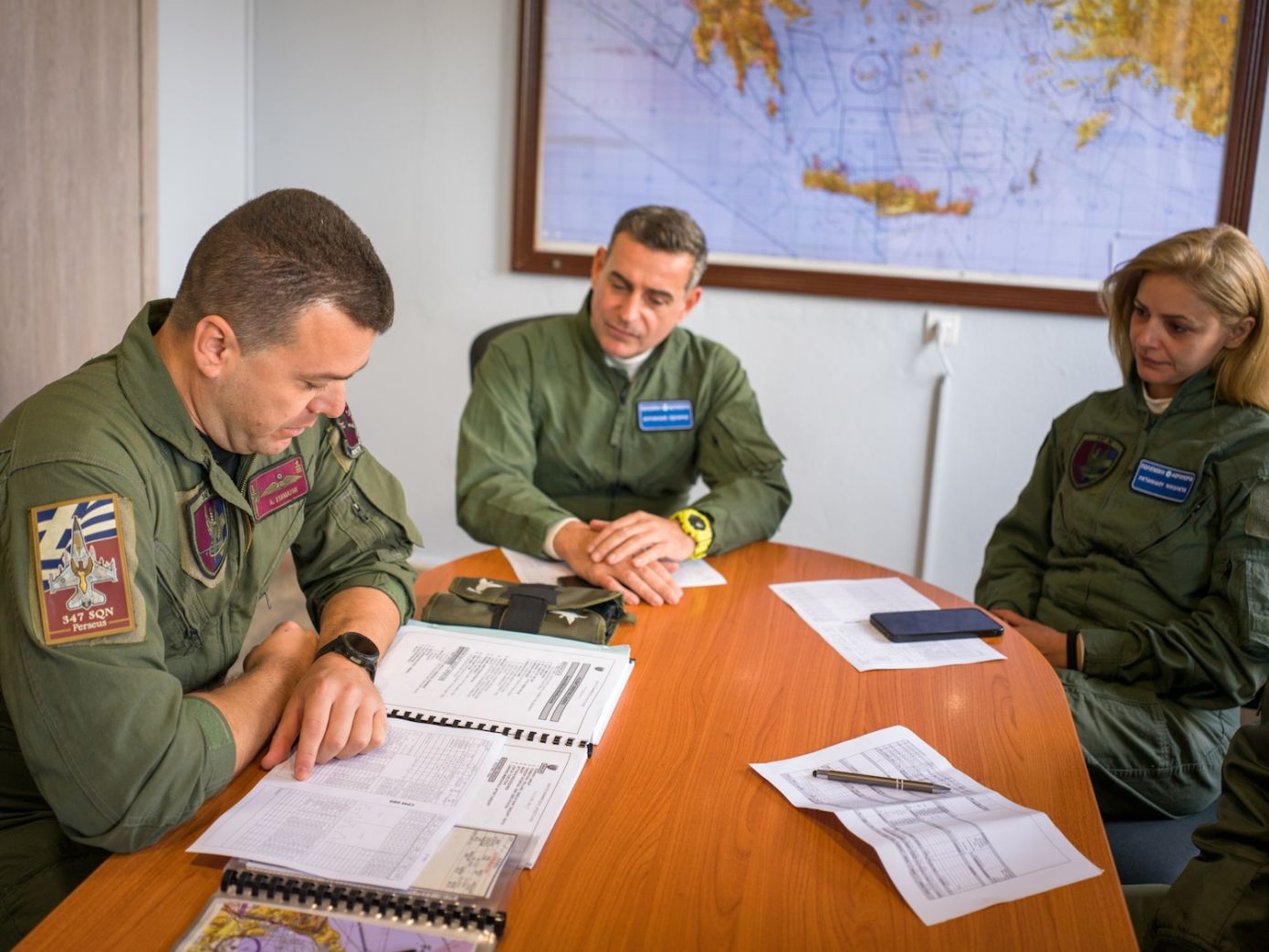 Δίπλα μας ένα μελίσσι από πιλότους της ΠΑ παραβρίσκονται στην βάση και συντονίζουν, εξηγούν, απαντούν για όλα μέσα και έξω από το κτίριο της 347 Μοίρας. Φέτος είναι η πρώτη φορά που οι πτήσεις των δημοσιογράφων έγιναν στην συγκεκριμένη Αεροπορική Βάση, όπως ήταν και η πρώτη φορά που έγινε στις 10 του Νοέμβρη το αεροπορικό σόου της γιορτής της ΠΑ στη Θεσσαλονίκη για όλη τη Βόρεια Ελλάδα. Το κλίμα είναι γιορτινό, φιλικό αλλά και απόλυτα σοβαρό στις πολλαπλές ενημερώσεις που μας γίνονται, ενημερώσεις για όλα τα δεδομένα της πτήσης που θα εκτελέσουμε. Μας έχουν άραγε επιφυλάξει μια…τουριστική πτήση; Απολύτως όχι μας λένε. Από το καλωσόρισμα μέχρι την πρόγνωση καιρού, μέχρι την τελευταία στιγμή που έγινε η τελευταία προσγείωση του τρίτου κύματος, όλα έγιναν «…όπως ακριβώς γίνονται για τους επαγγελματίες πιλότους». Αυτό είναι που απαντά στην ερώτηση μου για το εάν οι πτήση μου θα είναι «νερωμένη» σε απαιτήσεις σε σύγκριση με τις κανονικές εκπαιδευτικές ο Μοίραρχος της 347. Με διαβεβαιώνει πως ότι θα ζήσουμε εκεί επάνω για 50 περίπου λεπτά θα είναι «ακριβώς όπως σχεδιάζεται μια τέτοιου τύπου ημέρα εκπαίδευσης για τους πιλότους της ΠΑ». Στο άκουσμα αυτής της διατύπωσης, ένα μείγμα ενθουσιασμού διαπερνά τους παρόντες στην αίθουσα ενημέρωσης.