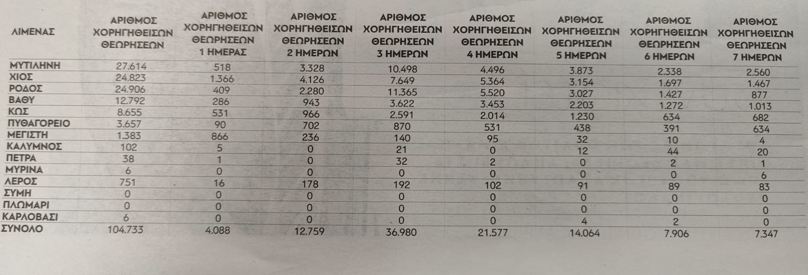 Όπως προκύπτει, πιο δημοφιλής προορισμός είναι η Λέσβος καθώς για το συγκεκριμένο νησί έχουν χορηγηθεί 27.614 θεωρήσεις. Ακολουθεί η Ρόδος και η Χίος.