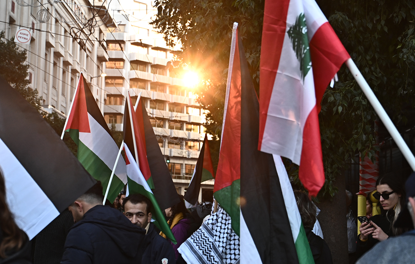 Οι διαδηλωτές έφτασαν έξω από την αμερικανική πρεσβεία, φωνάζοντας συνθήματα κατά των ΗΠΑ και του Ισραήλ και υπέρ της Παλαιστίνης, ενώ αργότερα πέρασαν και μπροστά από την ισραηλινή πρεσβεία.