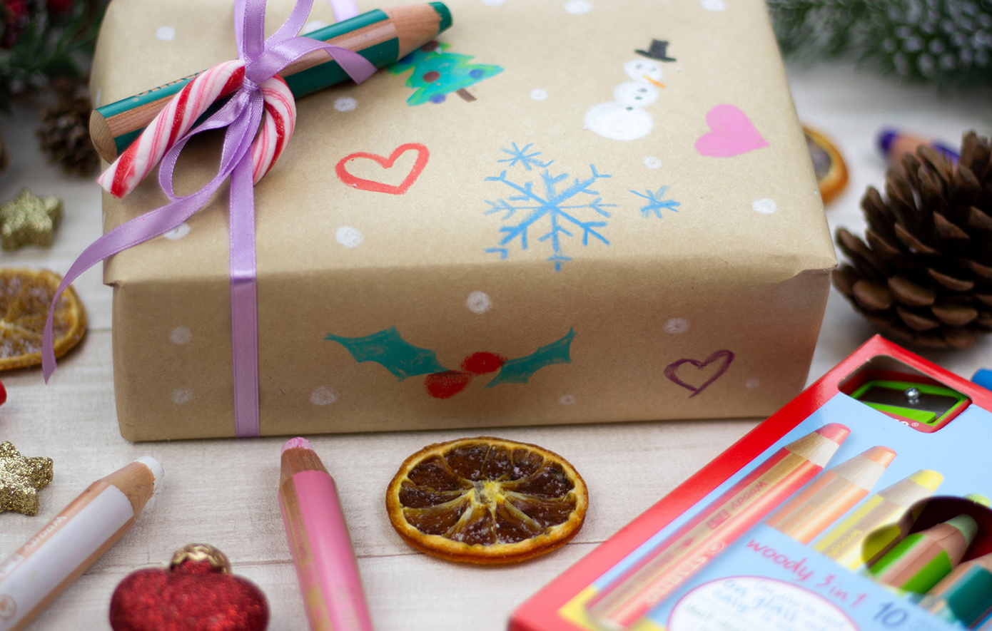 Το περιτύλιγμα των δώρων μπορεί να γίνει μια δημιουργική διαδικασία που προσφέρει μια προσωπική αίσθηση στην κάθε παραλαβή. Με τα STABILO Woody 3 σε 1 μπορείς να δημιουργήσεις εντυπωσιακά σχέδια και ευχετήρια μηνύματα πάνω σε χαρτί περιτυλίγματος. Φτιάξε ιδιαίτερα μοτίβα, γράψε τα ονόματα των παραληπτών και δημιούργησε μια πρωτότυπη εμφάνιση για τα δώρα σου.