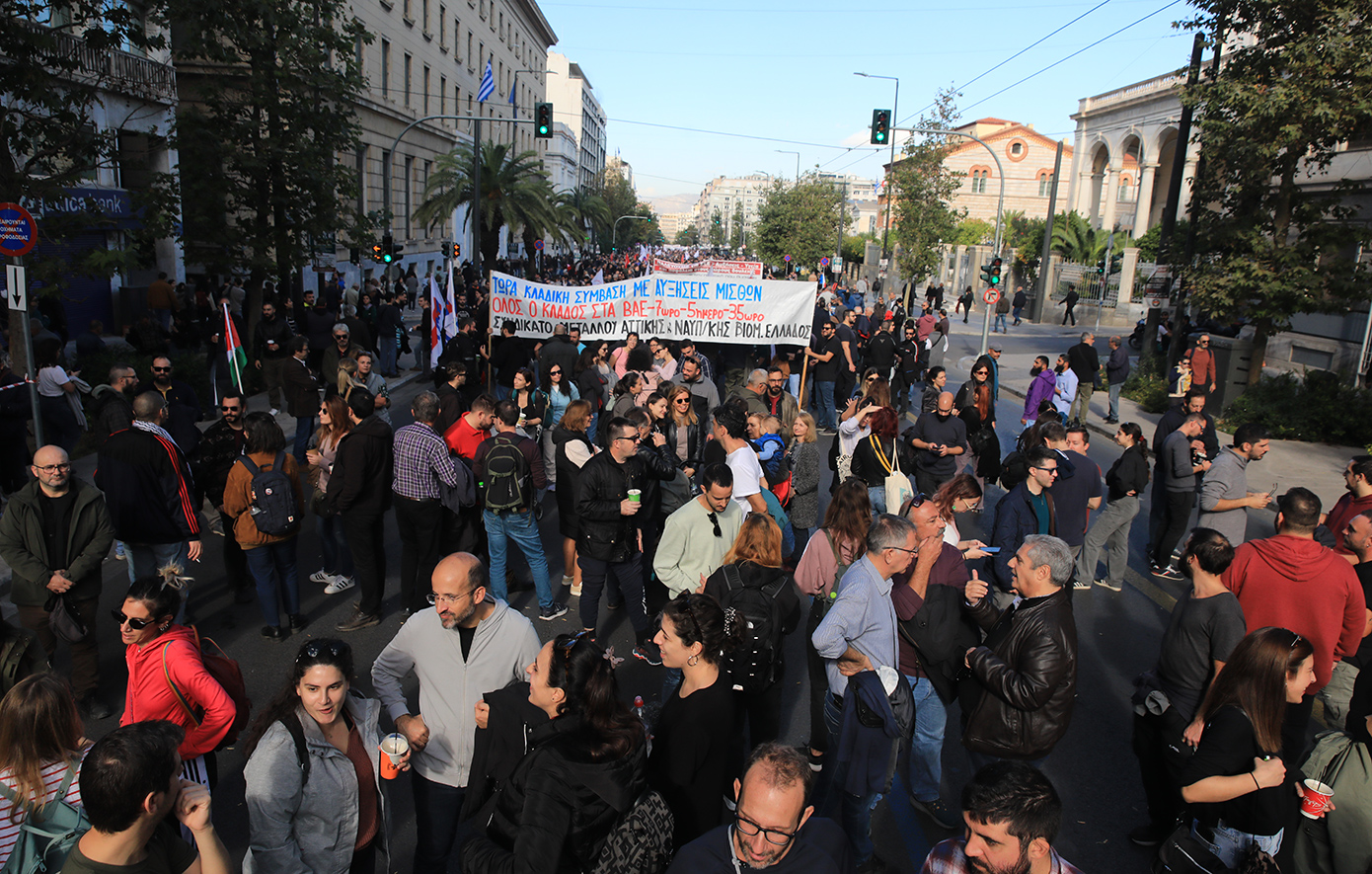 Σε απεργιακό κλοιό βρίσκεται σήμερα, Τετάρτη 20/11, η χώρα στο πλαίσιο της 24ωρης γενικής απεργίας που έχουν εξαγγείλει η ΓΣΕΕ και η ΑΔΕΔΥ. Τα ΜΜΜ πραγματοποιούν στάσεις εργασίας, ενώ δεμένα στα λιμάνι θα παραμείνουν για όλη την ημέρα τα πλοία.