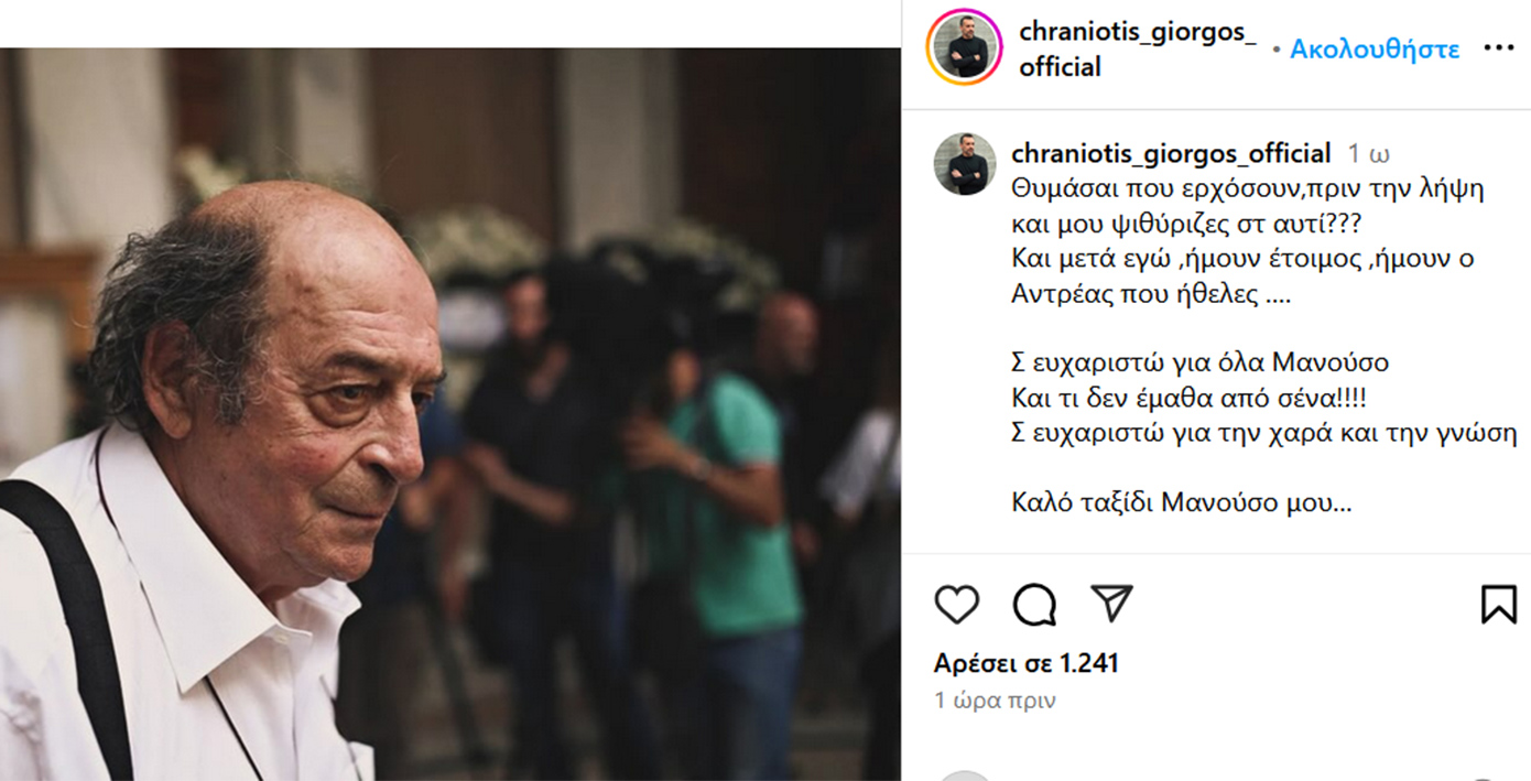 Ο Γιώργος Χρανιώτης σημείωσε για τον Μανούσο Μανουσάκη: «Θυμάσαι που ερχόσουν ,πριν την λήψη και μου ψιθύριζες στ αυτί; Και μετά εγώ, ήμουν έτοιμος, ήμουν ο Αντρέας που ήθελες….Σ’ ευχαριστώ για όλα Μανούσο. Και τι δεν έμαθα από σένα!!!! Σ’ ευχαριστώ για την χαρά και την γνώση. Καλό ταξίδι Μανούσο μου».