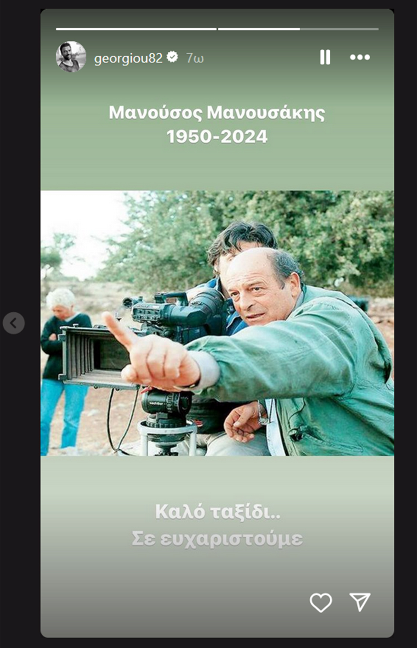Ο ηθοποιός Σόλων Τσούνης σημείωσε στο προφίλ του στο Instagram: «Σπουδαίος… Νιώθω τόσο τυχερός που σε γνώρισα και συνεργαστήκαμε… Καλό ταξίδι».