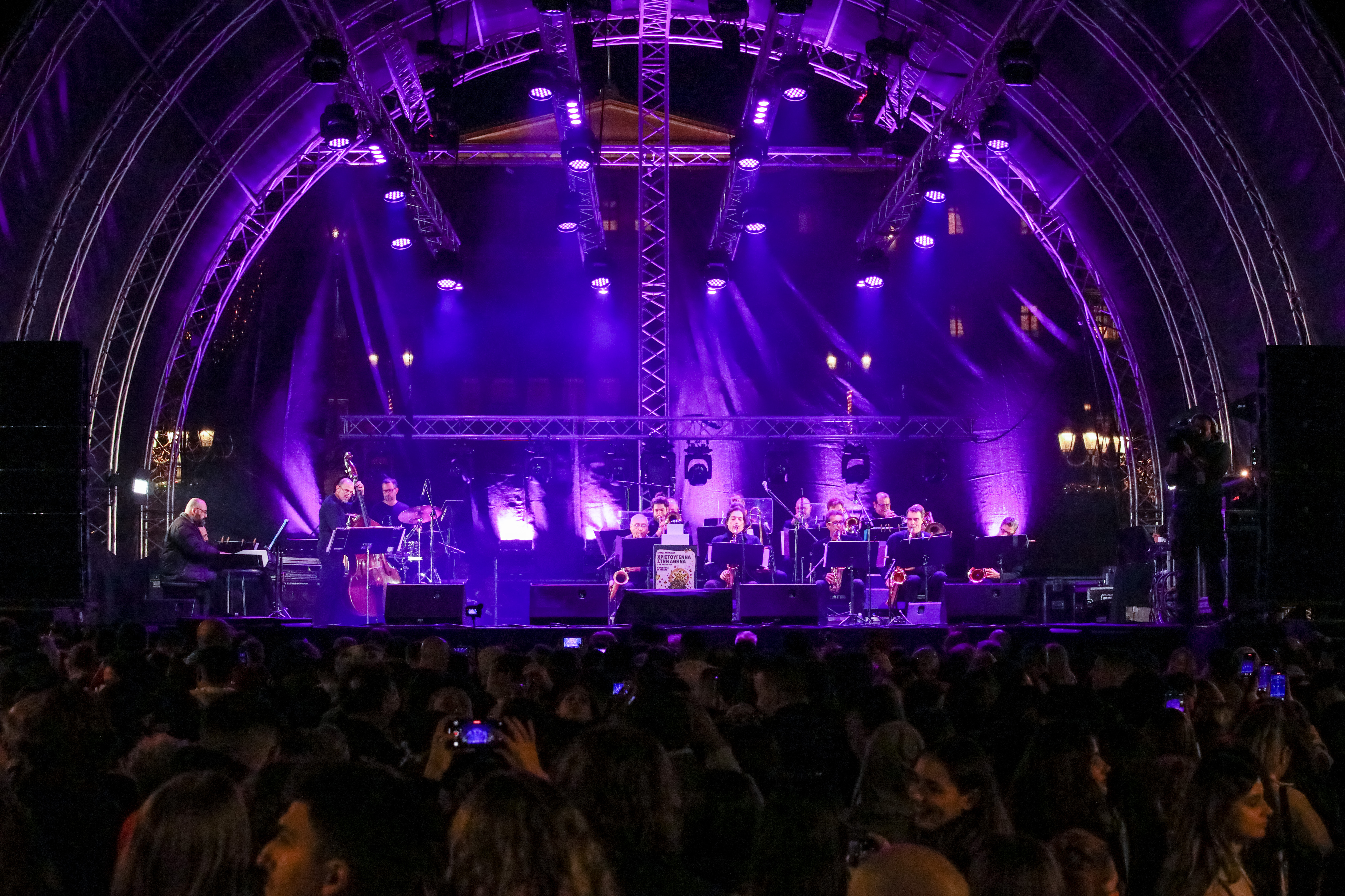 Την εκδήλωση παρουσιάζουν η Νάνσυ Ζαμπέτογλου και ο Θανάσης Αναγνωστόπουλος, ενώ η Νεφέλη Φασουλή και η Athens Big Band «χρωματίζουν» την πλατεία με χριστουγεννιάτικες μελωδίες.