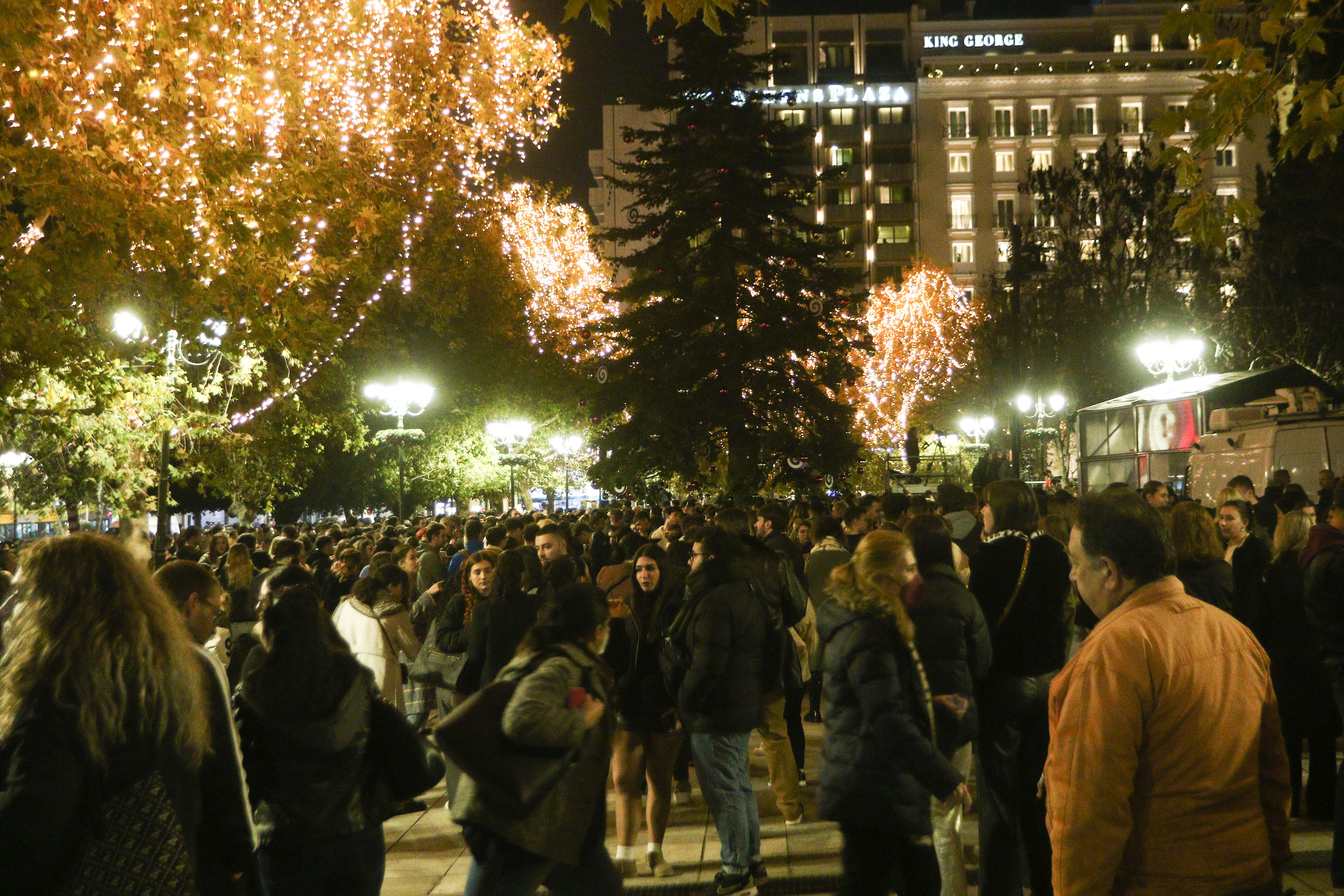 Tα γιορτινά της φόρεσε η Πλατεία Συντάγματος με τη φωταγώγηση του χριστουγεννιάτικου δέντρου.