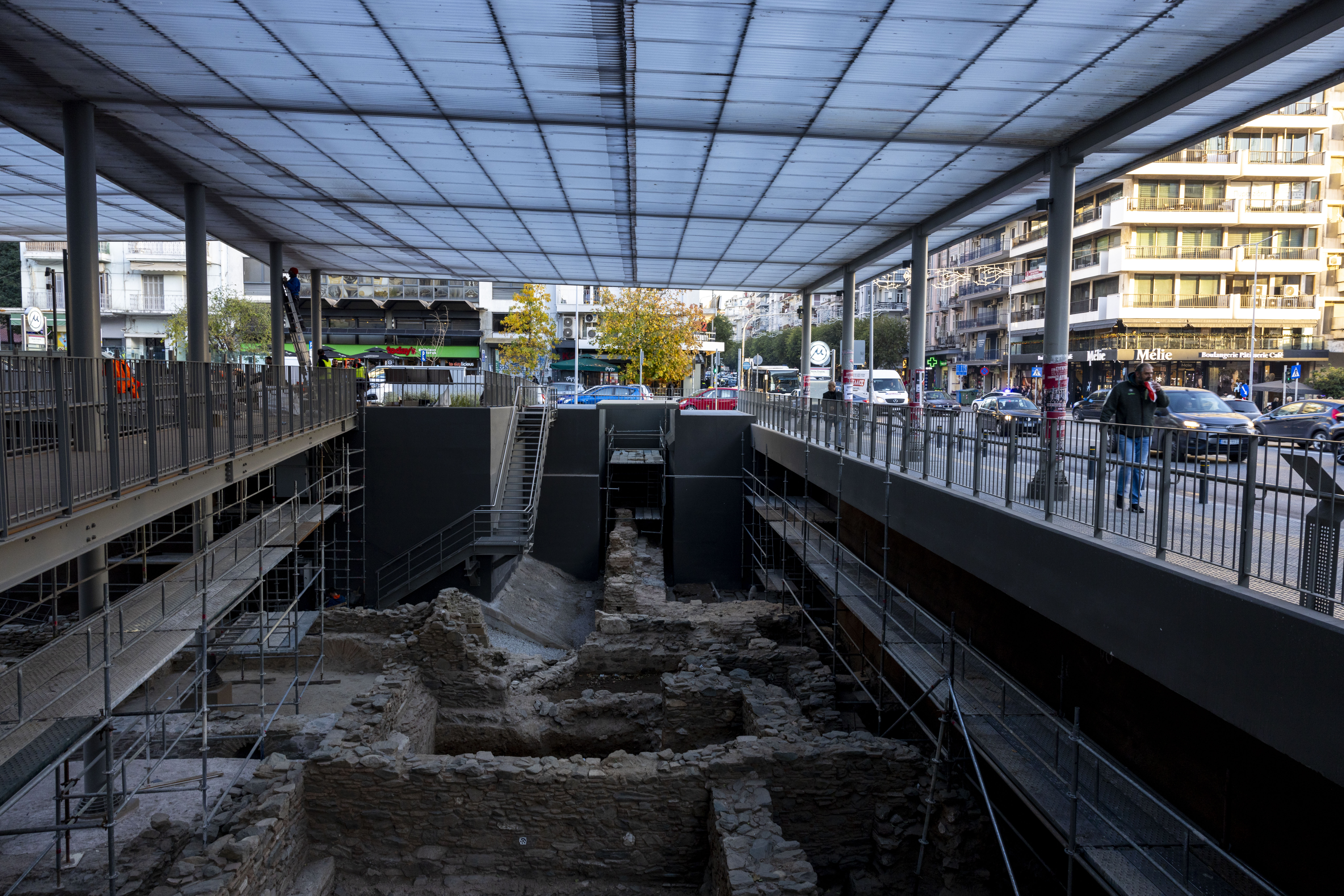 Η αρχιτεκτονική των δύο πρώτων επιπέδων του Σταθμού, και ιδίως του δευτέρου, το οποίο αποτελεί τον κυρίως αρχαιολογικό θάλαμο, δίνει τη δυνατότητα κίνησης επάνω από τις αρχαιότητες, αλλά και αυτές της στάσης και της παρατήρησης, σε μικρά αιωρούμενα «μπαλκόνια», όπου οποιοσδήποτε μπορεί να κοντοσταθεί για να κοιτάξει και να φωτογραφίσει τα εντυπωσιακά ευρήματα.