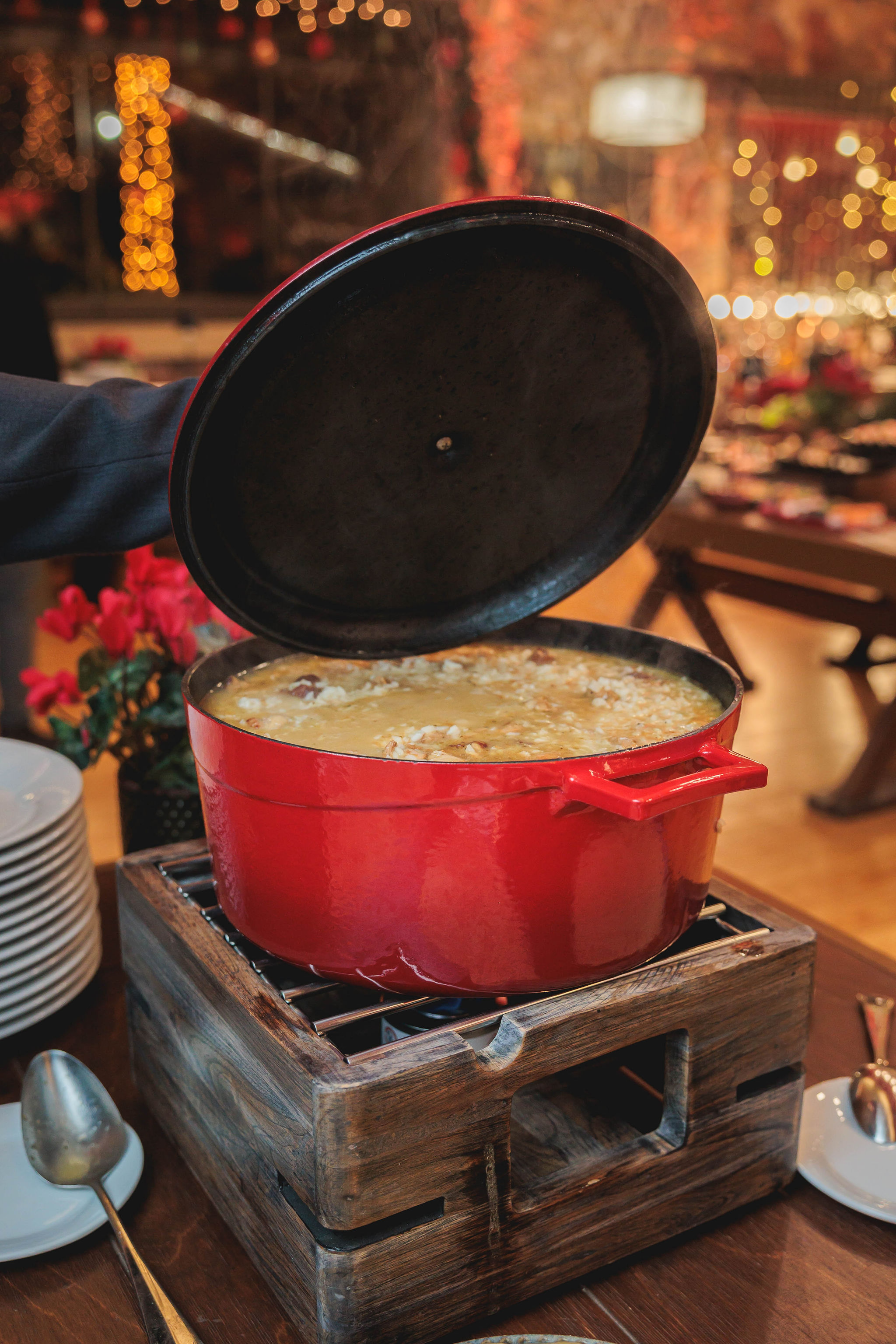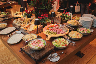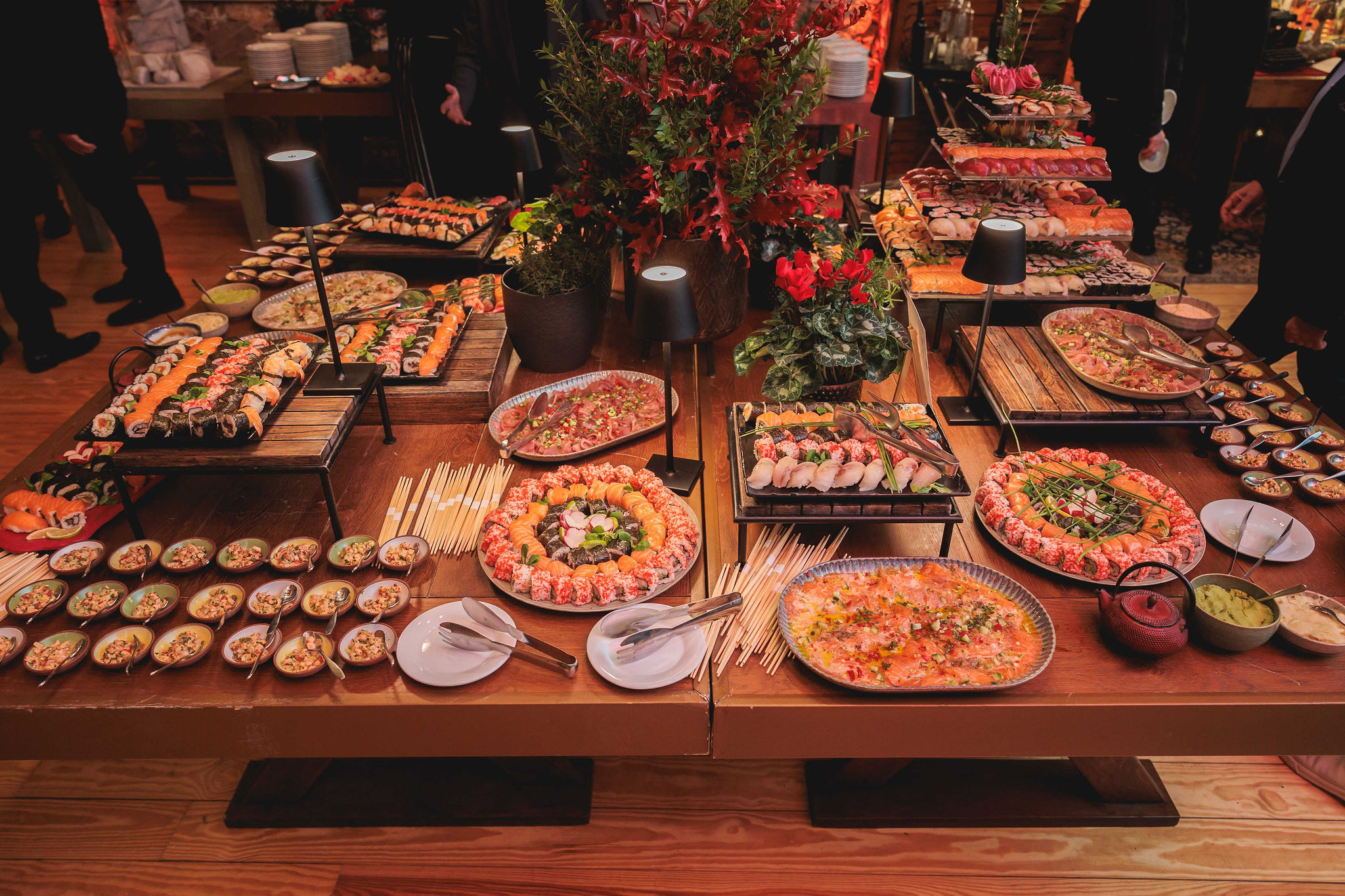 Σε διαφορετικά stations με ιδιαίτερο στήσιμο και εμφάνιση οι καλεσμένοι γεύτηκαν live pizza & live pasta στο Italian station, live carpaccio, ceviche & carving στο Fish station, live παρασκευές στο Salad station, ιδιαίτερες κοπές όπως Tomahawk stone Greek Black Angus, Dry aged rib eye, Red Angus fillet mignion, Pata Negra French cut και Corn fed whole chicken στο Meat station, live sushi και dumplings σε steamers στο Asian station και τέλος παραδοσιακό αρνάκι τσιγαριστό και πιλάφι, ντολμαδάκια, γιουβέτσι και πολλές ακόμα Ελληνικές γεύσεις στο Greek station. Το γαστρονομικό ταξίδι ολοκληρώθηκε με γλυκές γεύσεις που οι καλεσμένοι απόλαυσαν στο Desserts station. Φυσικά δεν έλειπαν από το party ονειρικά cocktails με τόνους Χριστουγέννων που επιμελήθηκε ο Άρης Χατζηαντωνίου.