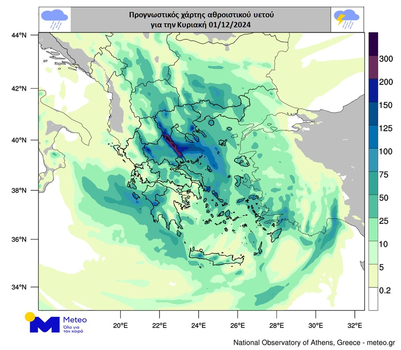 Σύμφωνα με τα νεότερα προγνωστικά στοιχεία του meteo.gr/Εθνικού Αστεροσκοπείου Αθηνών, για το υπόλοιπο της Κυριακής 01/12: