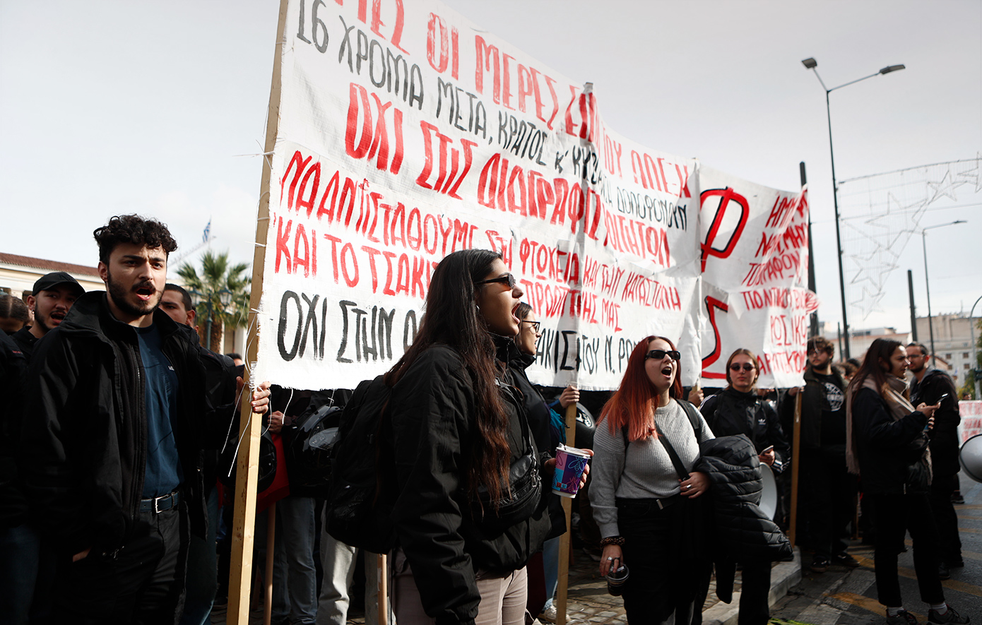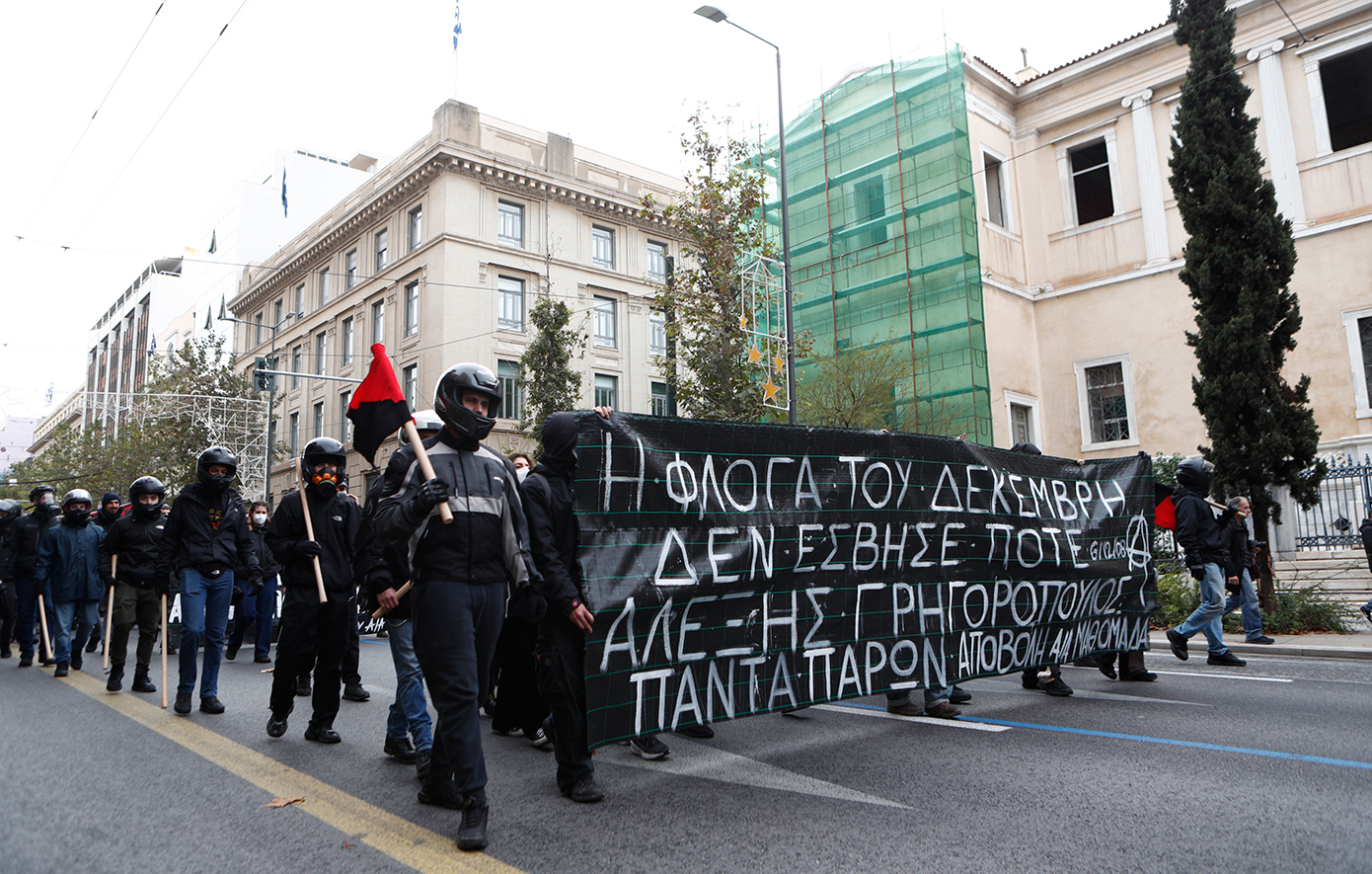 Σε εξέλιξη είναι η μαθητική πορεία στη μνήμη του Αλέξανδρου Γρηγορόπουλου, ο οποίος έπεσε νεκρός το 2008 στα Εξάρχεια από τη σφαίρα του πρώην ειδικού φρουρού, Επαμεινώνδα Κορκονέα.