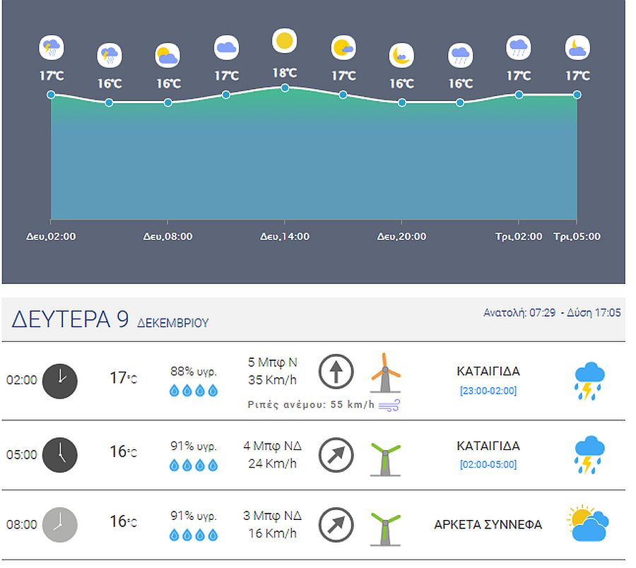 Αξίζει να σημειωθεί ότι, σύμφωνα πάντα με το γράφημα του meteo, τα φαινόμενα θα επιμείνουν για αρκετή ώρα και τουλάχιστον μέχρι τις 8:00 το πρωί της Δευτέρας.