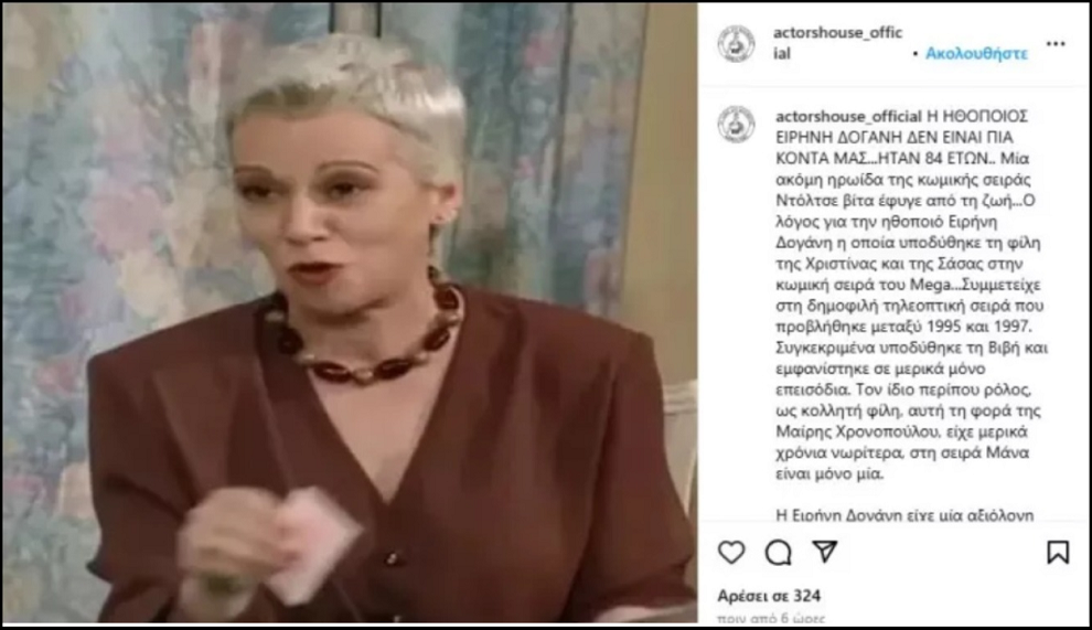 Σημειώνεται, ότι στις 8/12 το «Σπίτι του Ηθοποιού» είχε προχωρήσει σε ανάρτηση -έχει διαγραφεί πλέον- γράφοντας ότι η Ειρήνη Δογάνη μόλις είχε φύγει από τη ζωή.