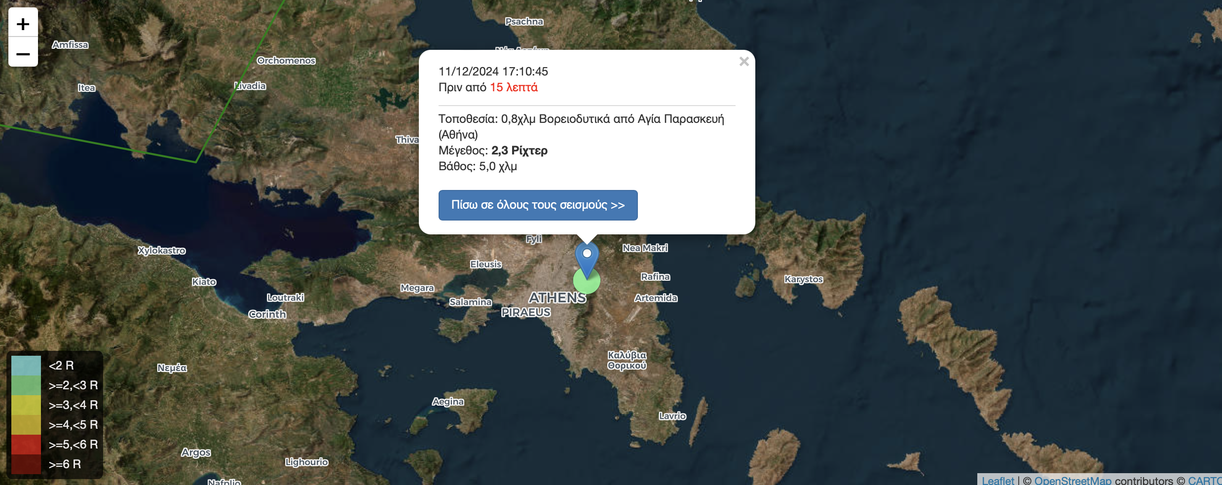 Σεισμός 2,3 βαθμών της κλίμακας Ρίχτερ σημειώθηκε στις 17:10, το απόγευμα της Τετάρτης, στο Χαλάνδρι.