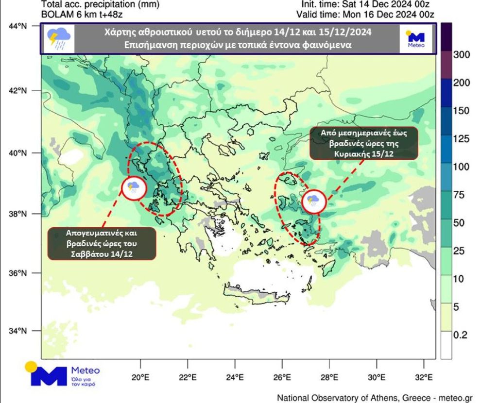 Συγκεκριμένα, σύμφωνα με τα διαθέσιμα προγνωστικά στοιχεία του Εθνικού Αστεροσκοπείου Αθηνών / meteo.gr, για το Σάββατο προβλέπονται βροχές στο Ιόνιο και στην Ήπειρο, που γρήγορα θα ενταθούν, θα εκδηλωθούν καταιγίδες και θα επεκταθούν στα υπόλοιπα δυτικά και βόρεια τμήματα. Κατά τη διάρκεια της νύχτας, τα φαινόμενα σταδιακά θα επεκταθούν ανατολικότερα, ενώ στα δυτικά θα εξασθενήσουν.