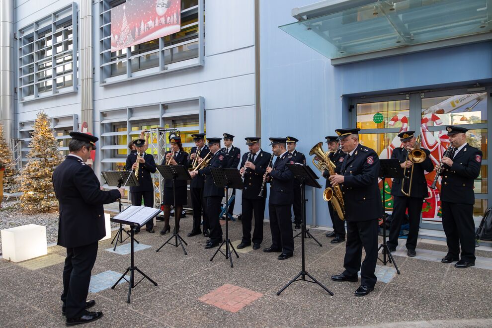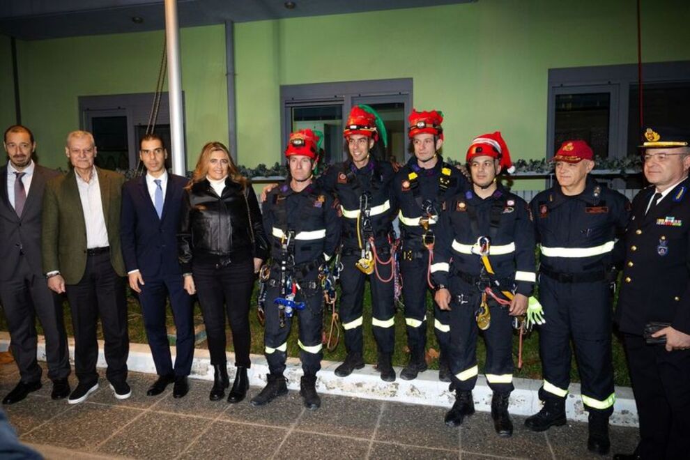 Την ίδια ώρα, από την πυροσβεστική κλίμακα που είχε στηθεί στο κέντρο του προαύλιο χώρου της Μονάδας, κατέβηκε ο Άγιος Βασίλης ενθουσιάζοντας μικρούς και μεγάλους ενώ στην συνέχεια μοίρασε δώρα στα παιδιά που βρίσκονταν εκεί, υπό τους ήχους χριστουγεννιάτικων μελωδιών από την μπάντα του Πυροσβεστικού Σώματος.