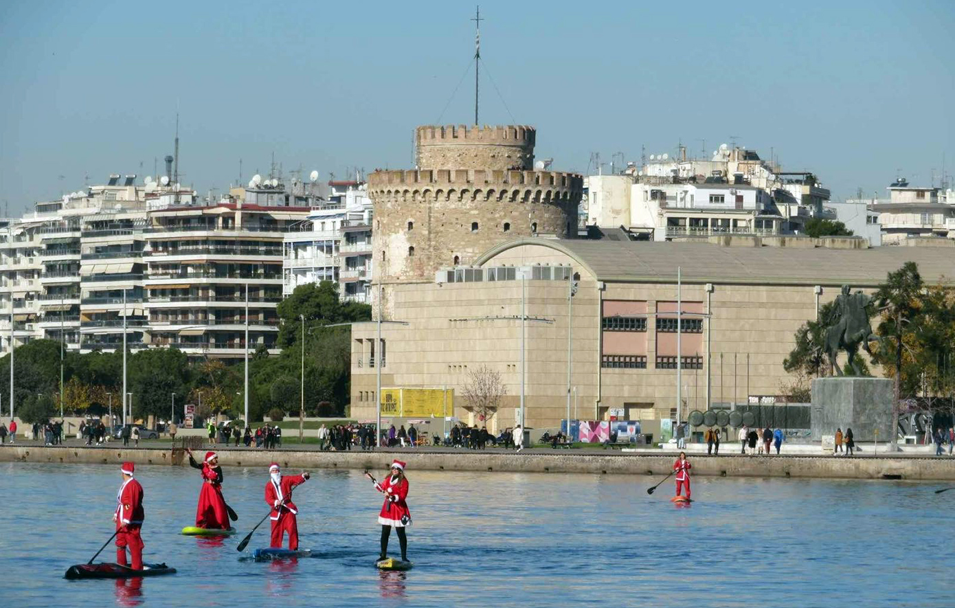 Όσοι θα συμμετάσχουν είναι έτοιμοι να φορέσουν τις κόκκινες στολές και τους σκούφους του Αϊ – Βασίλη και να κωπηλατήσουν με τις σανίδες sup στον Θερμαϊκό Κόλπο. Οι λάτρεις της θάλασσας θα ξεκινήσουν το κουπί από τον Λευκό Πύργο και θα «σκίσουν» τα νερά μπροστά από το λιμάνι της πόλης.