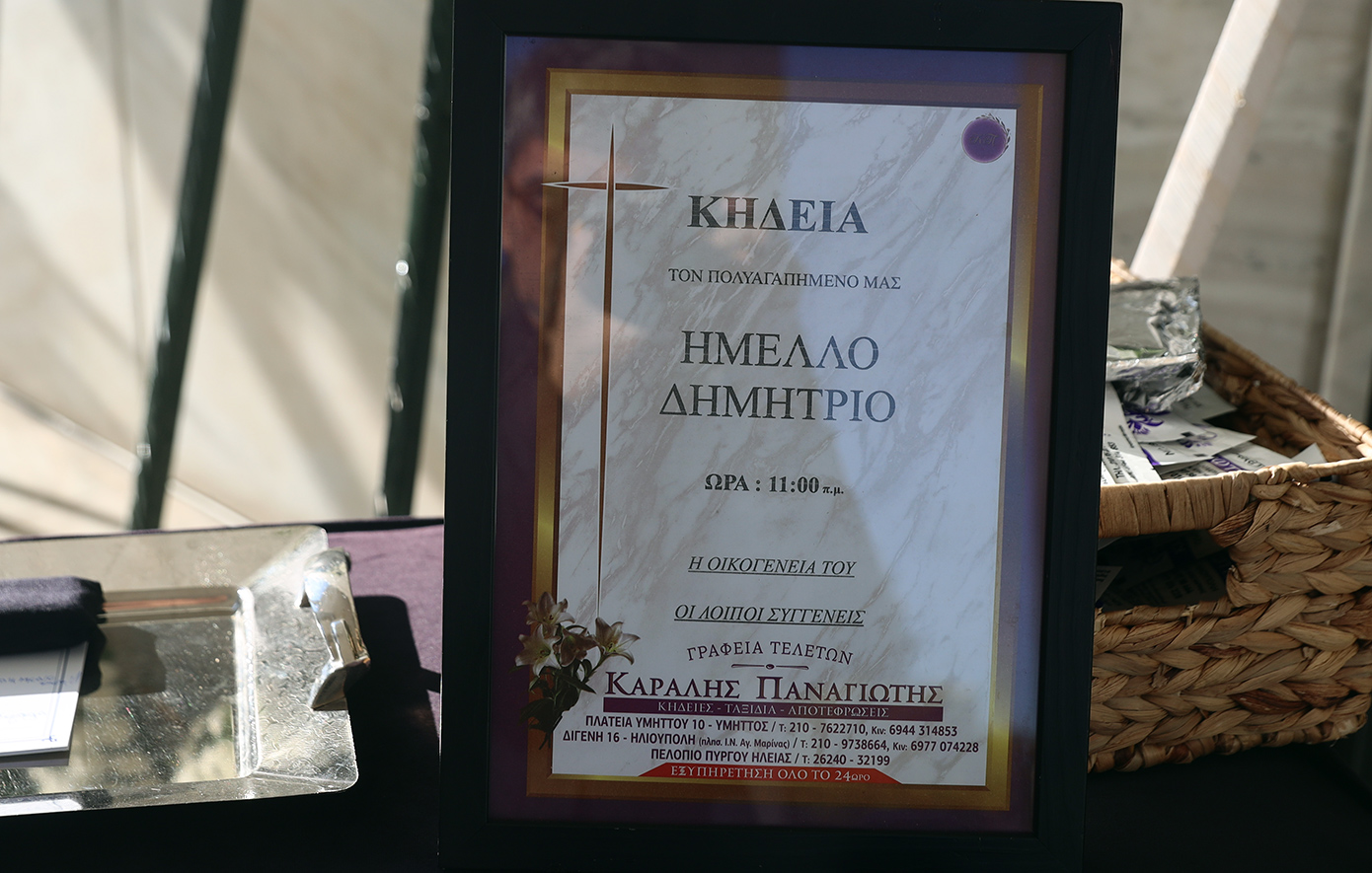 Επιθυμία της οικογένειάς του ήταν, αντί στεφάνων, να κατατεθούν χρήματα στον λογαριασμό του Ταμείου Αλληλοβοηθείας Ελλήνων Ηθοποιών (ΤΑΣΕΗ).