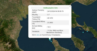 Σεισμός μεγέθους 3,7 βαθμών της κλίμακας Ρίχτερ σημειώθηκε το πρωί (06:39) της Τρίτης, παραμονής των Χριστουγέννων, στη Χαλκιδική.