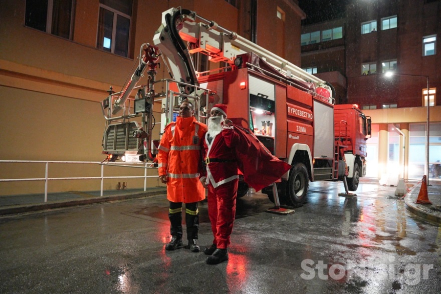 Χριστούγεννα στην παιδιατρική κλινική του Νοσοκομείου Μυτιλήνης έκανε ο Άγιος Βασίλης. Αποδεικνύοντας ότι όχι μόνο υπάρχει αλλά είναι και… πυροσβέστης!