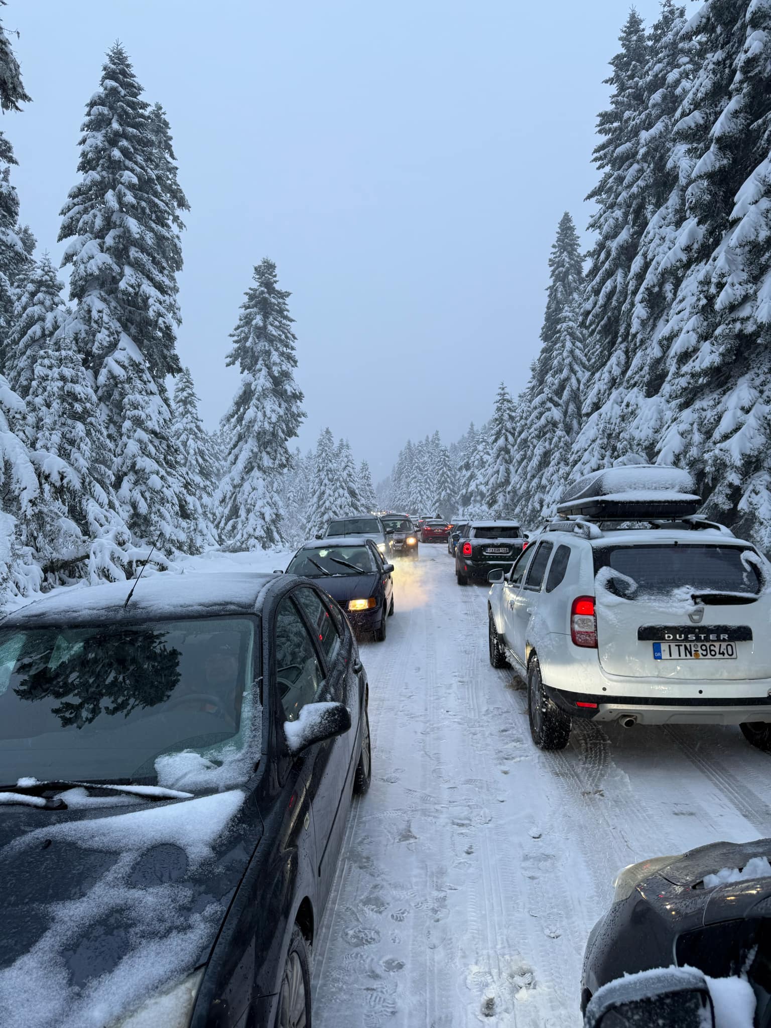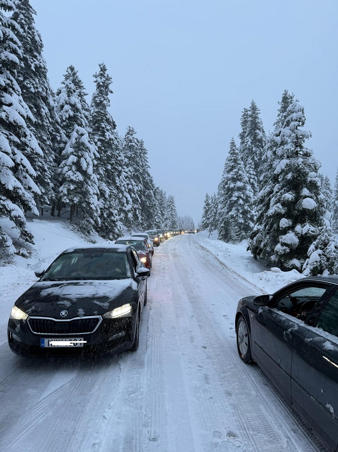 Κυκλοφοριακό κομφούζιο επικρατεί από το πρωί της Πέμπτης, δεύτερης μέρας των Χριστουγέννων, στο δρόμο για το Περτούλι στα ορεινά των Τρικάλων.