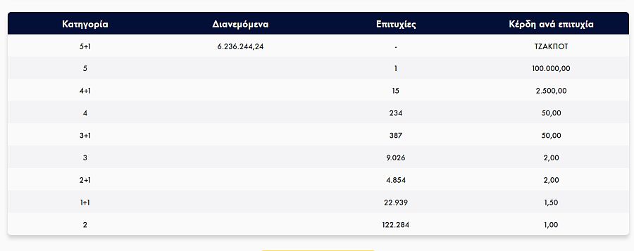 Υπενθυμίζεται πως οι κληρώσεις του Τζόκερ πραγματοποιούνται κάθε Τρίτη, Πέμπτη και Κυριακή στις 22:00.